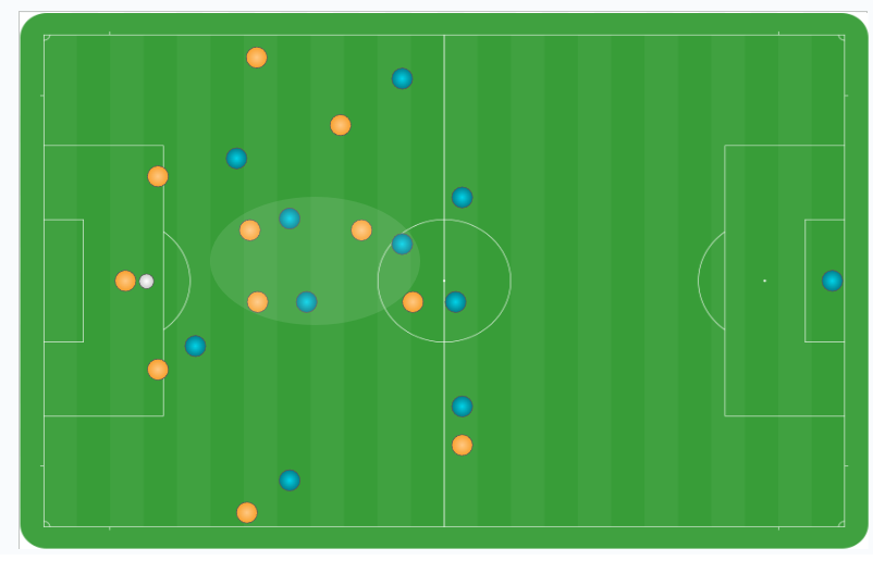 На видео видно, что именно Тимбер был адресатом передачи Райи — по его открыванию из глубины (которое, исходя из представленных эпизодов, имело "системный" характер) доигрывал Нету. Санчес визуально без каких-либо проблем вышел на этот заброс, но и ожидания от такой передачи (модель оценила вероятность её прохода в 18%) вряд ли могли быть высокими — нужно не только хорошо подготовить ситуацию в последней линии, но и надеяться на ошибку голкипера.