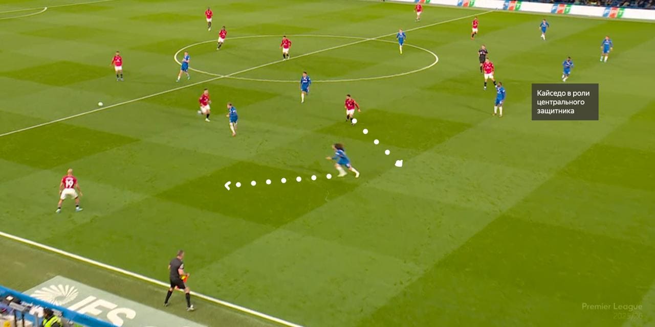 Однако у соперников и здесь была общая черта — проблема с последним или предпоследним пасом. И слишком мало решений, которые бы действительно застали врасплох. Как вообще удалось забить "МЮ"? Важный фактор: в момент голевой атаки "Челси" был в меньшинстве — Фофана оказывали помощь за бровкой. Позицию в центре обороны занимал Кайседо. Но стоит отметить умнейшее движение Бруно: