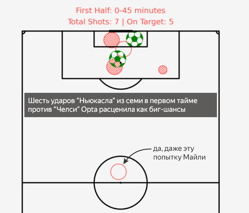 Справедливо, что не все из указанных ситуаций случились в разных владениях (например, удар Гордона и первый гол Вольтемаде) — то есть реализовать все шесть биг-шансов в любом случае не вышло бы, но однозначно преимущество "сорок" было колоссально, и гандикап в два мяча они более чем заслужили.