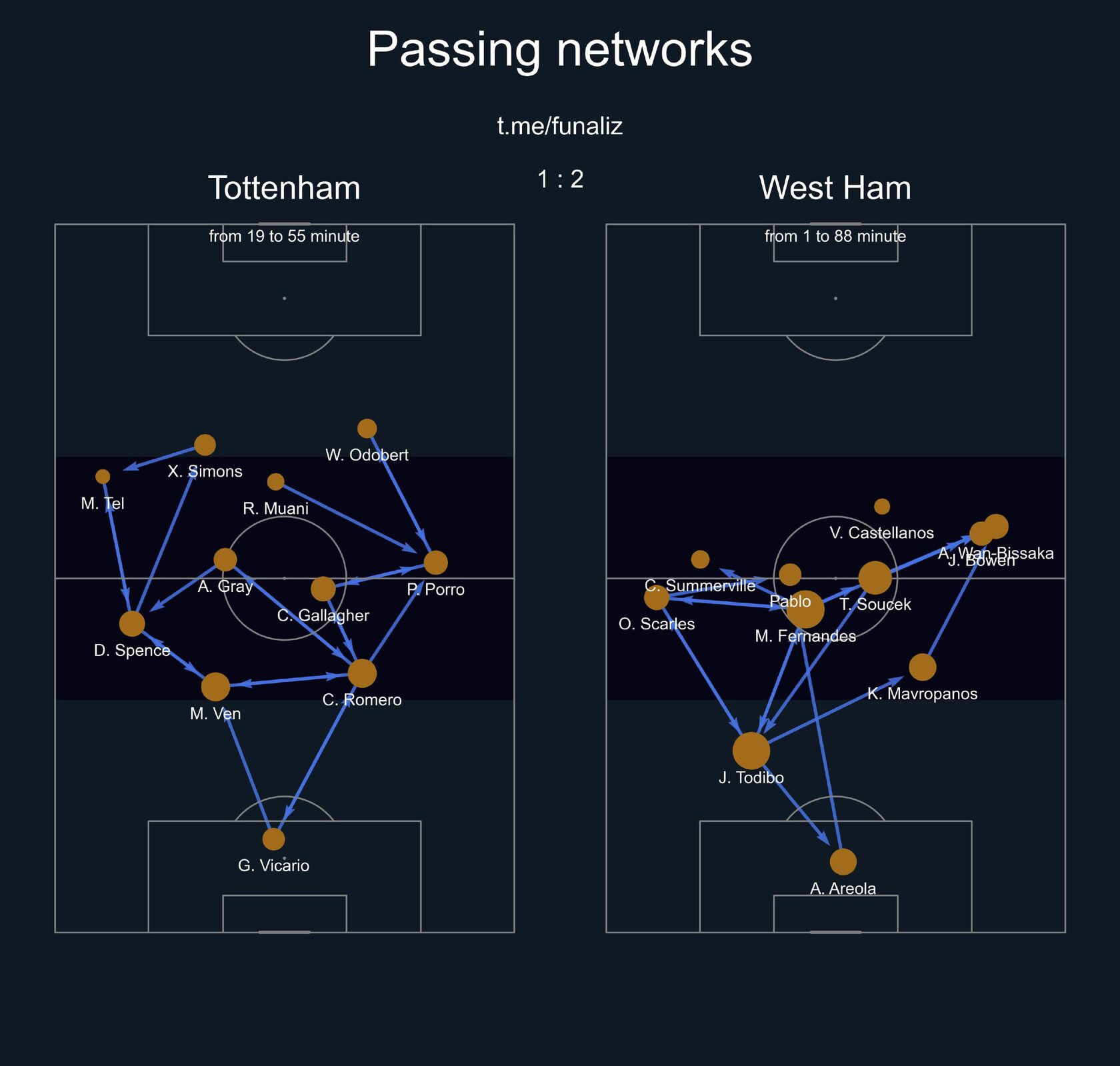 1) упираются во фланг лучшего, наверное, своего игрока в плане атак (Порро — первый в "Тоттенхэме" по количеству доставок мяча в чужую штрафную, второй — по доле нон-шота от общего значения по команде):