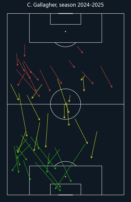 Здесь тоже крайне тяжело понять логику: вроде бы общеизвестно, что Галлахер — весьма ограниченный в фазах владений футболист (с минимумом "сложных" передач, да и сохраняет мяч под давлением он тоже на посредственном уровне), с хорошей работой без мяча, которая не покрывает указанные минусы.