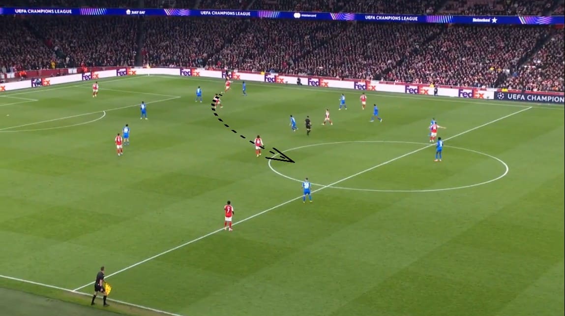Первый — выход Дьокереша в отрыве от Мартинелли (в первом матче оба вышли в старте). Это означало, что Виктор, которого часто критикуют по причине недооценки его действий на мяче, мог исполнить роль таргетмена и умело создавать изоляции для партнеров без ориентировок по Мартинелли, который часто "вредит" (становится абузой) команде в переходных фазах. Швед же, напротив, чрезвычайно полезен при "качельном" футболе, изобилующем перехватами.