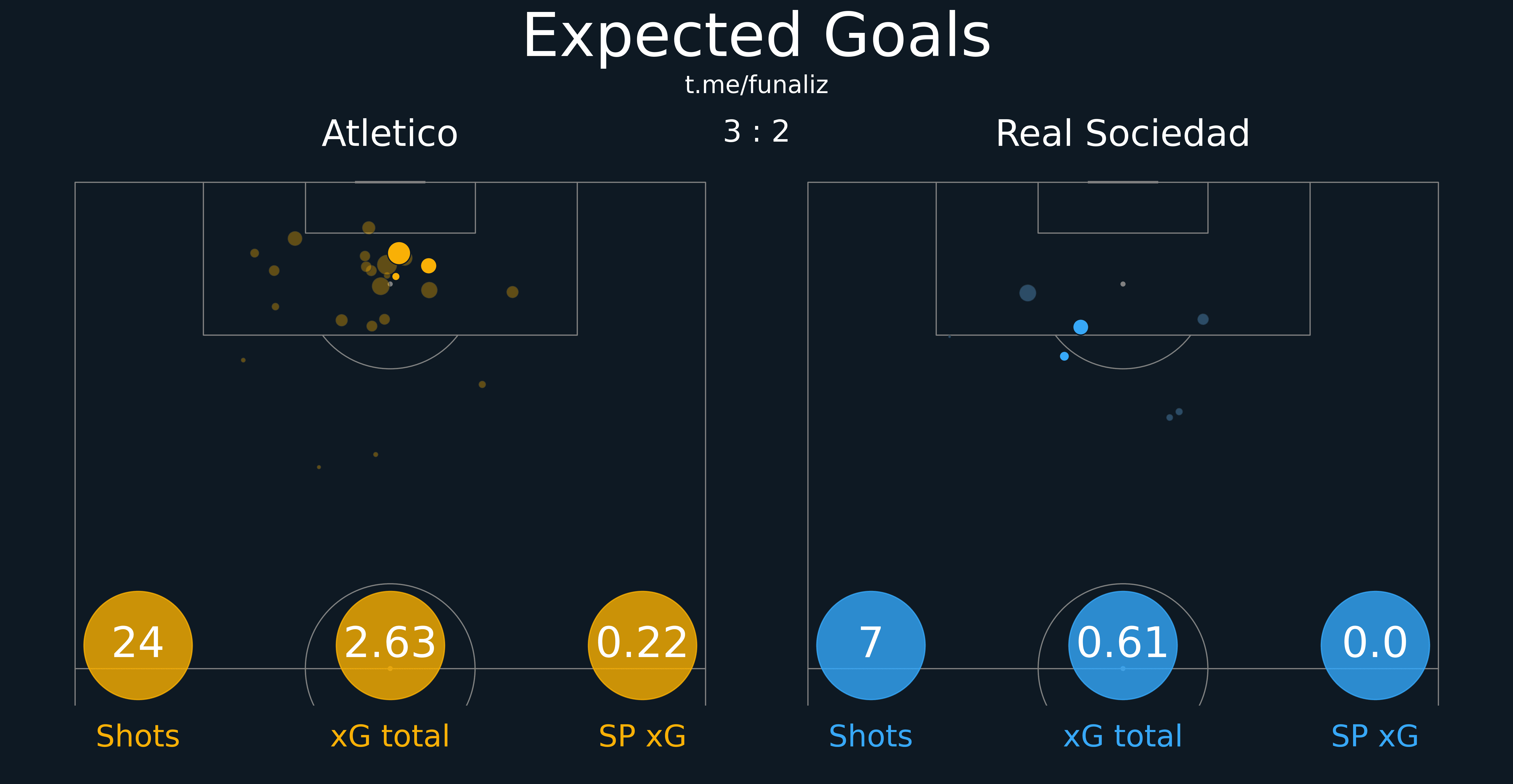 Похожими были обстоятельства и внутри отдельно взятого матча: действительно, много навесов от "Атлетико" — в том числе по первому тайму, где соперник оборонялся достаточно низко (наклон поля 81% - 19%); что не помешало совершить 27 попыток зайти в чужую штрафную без учета кроссов, более 2/3 из которых привели к тому, что мяч доходил до адресата.