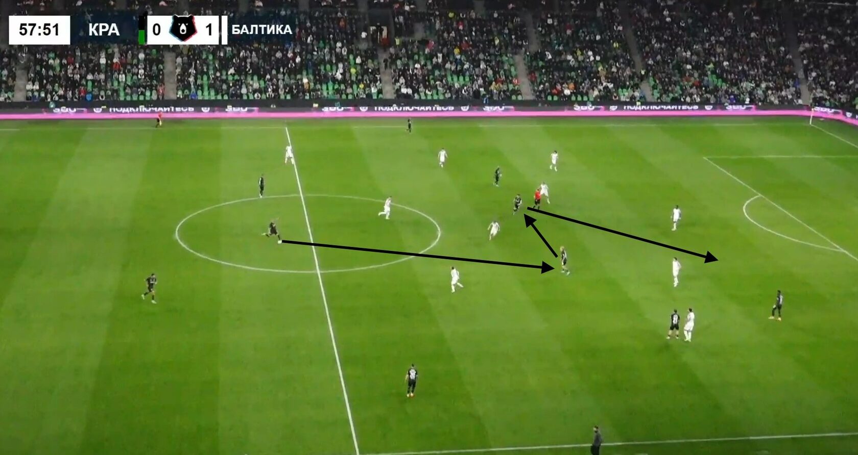 Что еще важно отметить, так это выход на позиции левого латераля у "Балтики" профильного центрального защитника — Натана Гассама. Казалось, что калининградцы из-за этого будут очень сильно ограничены в атакующих действиях, но сомнения сразу же развеялись. Универсальность, техническое оснащение и знание позиции позволили малийцу чувствовать себя максимально комфортно на левом фланге.