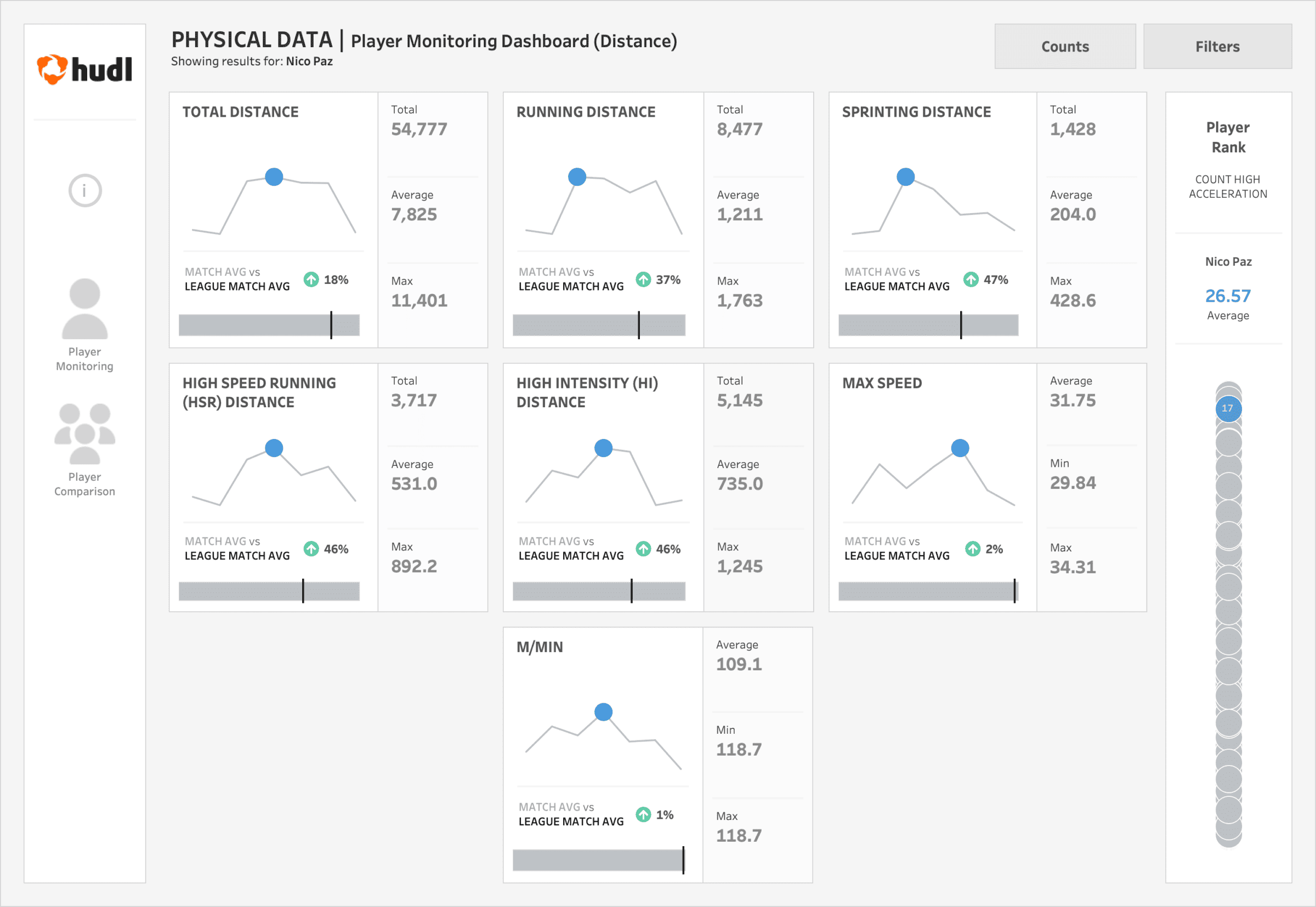 Физические данные Нико Паса в сравнении со средними показателями по лиге