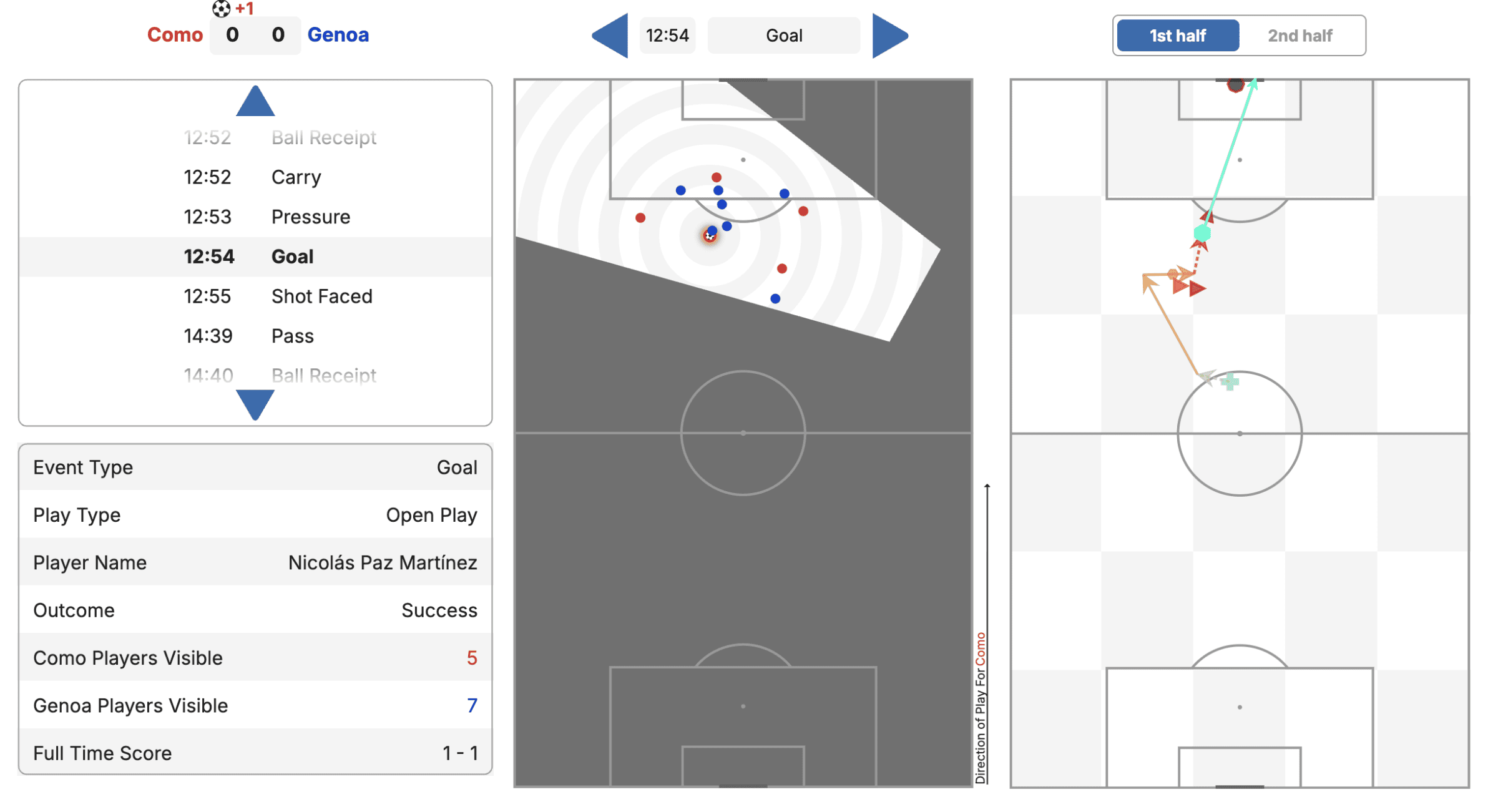 Тот факт, что Пас предпочитает играть в "инвертированной" позиции, не означает, что он не может смещаться на более привычный левый край. Аргентинец делает это в основном тогда, когда "Комо" уже переходит в атакующую треть поля, и, смещаясь ближе к "зоне мяча", благодаря своему мастерству, он может принимать решения на ограниченном пространстве.
