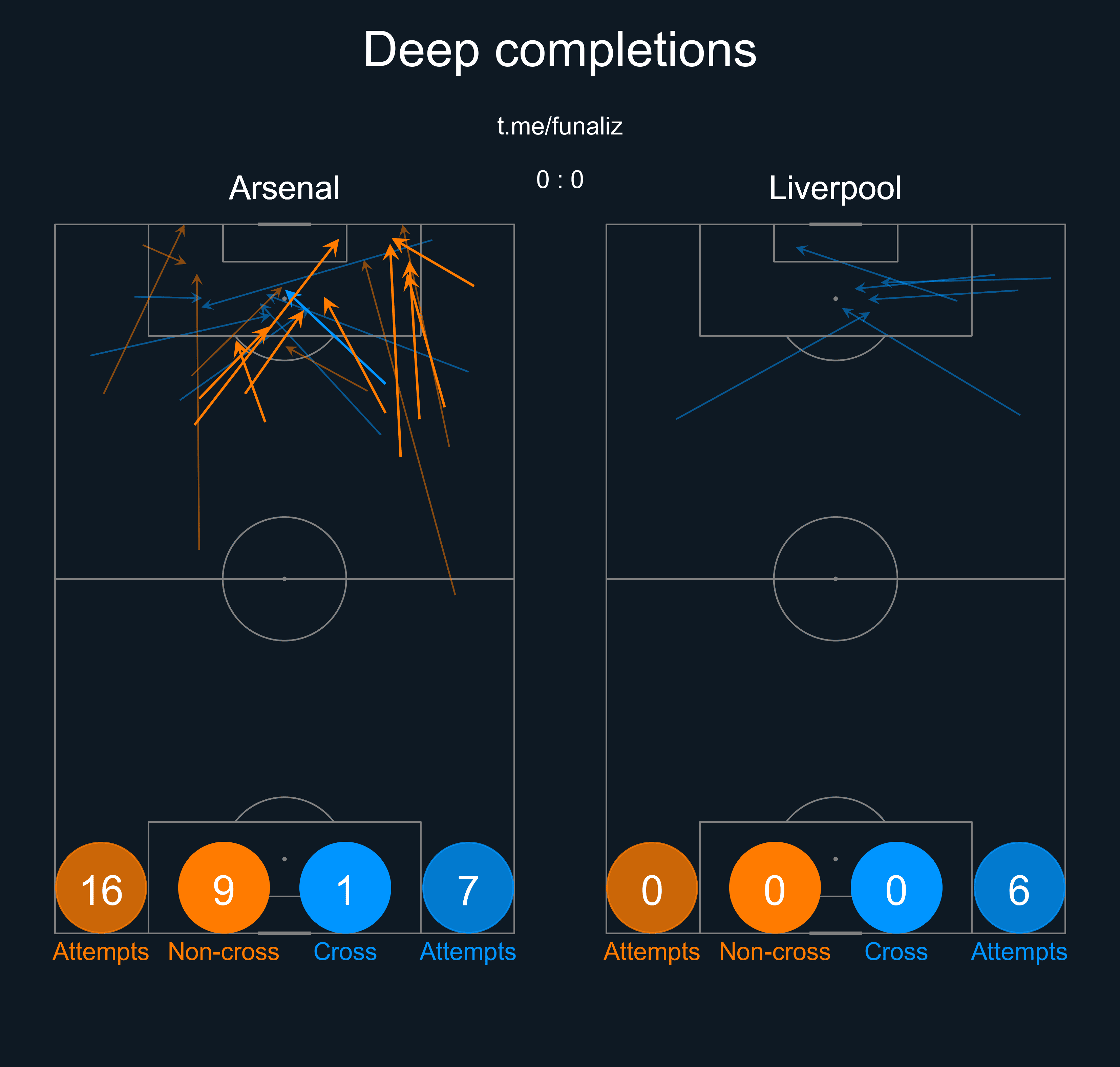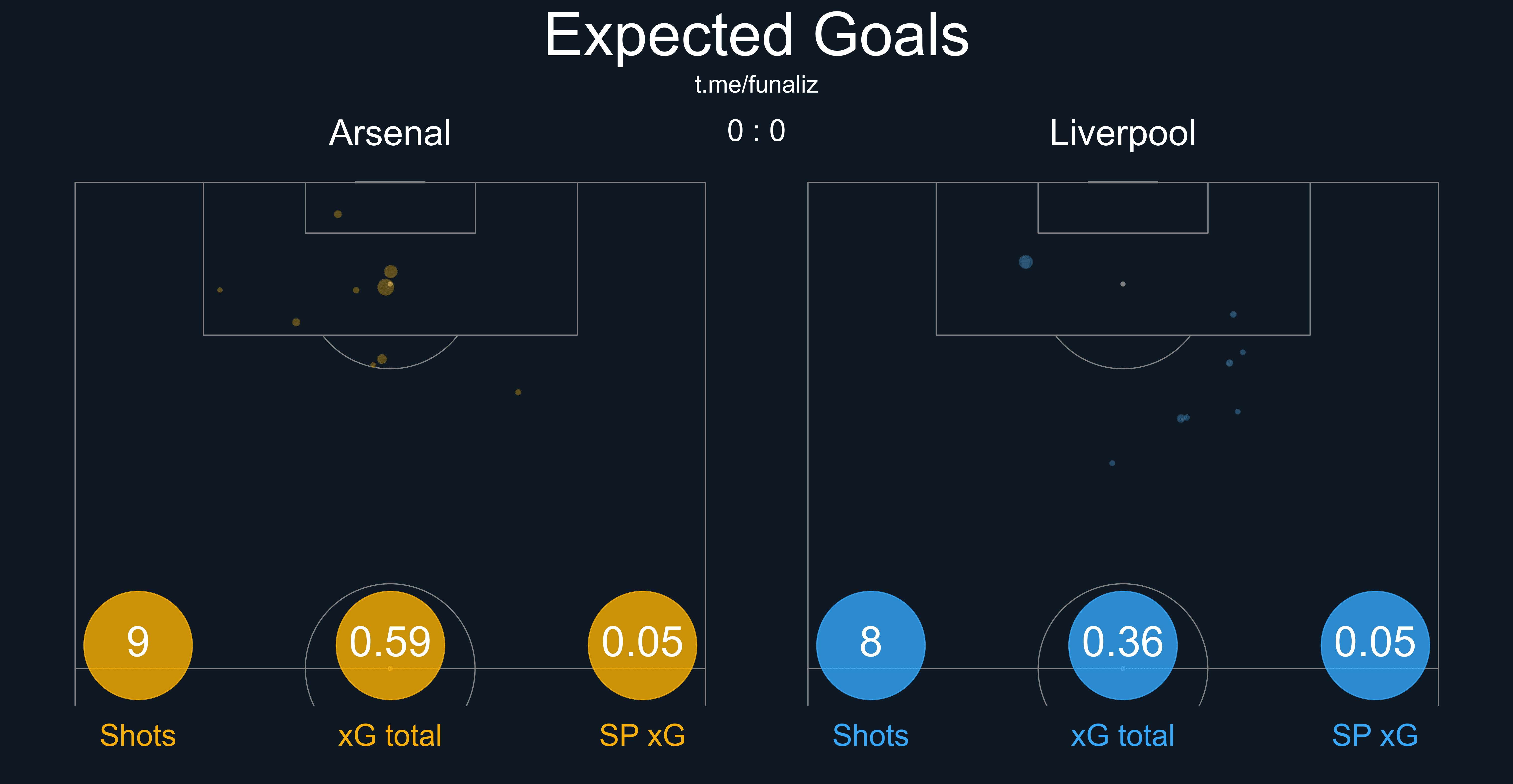 Во втором тайме "Ливерпуль" лучше прессинговал "Арсенал" в билдапе, больше владел мячом сам — команда Артеты просела вдвое по xG, который, как вы могли увидеть, и без того был скромнейшим. Сам тренер заявил, что после перерыва его команда "доминировала гораздо больше". Возможно, что-то перепутал — у лондонцев 33% владения без учета ситуаций, когда мяч в борьбе, а наклон поля был 70% на 30% в пользу "красных". И без ударов во втором тайме до 90-й минуты!
