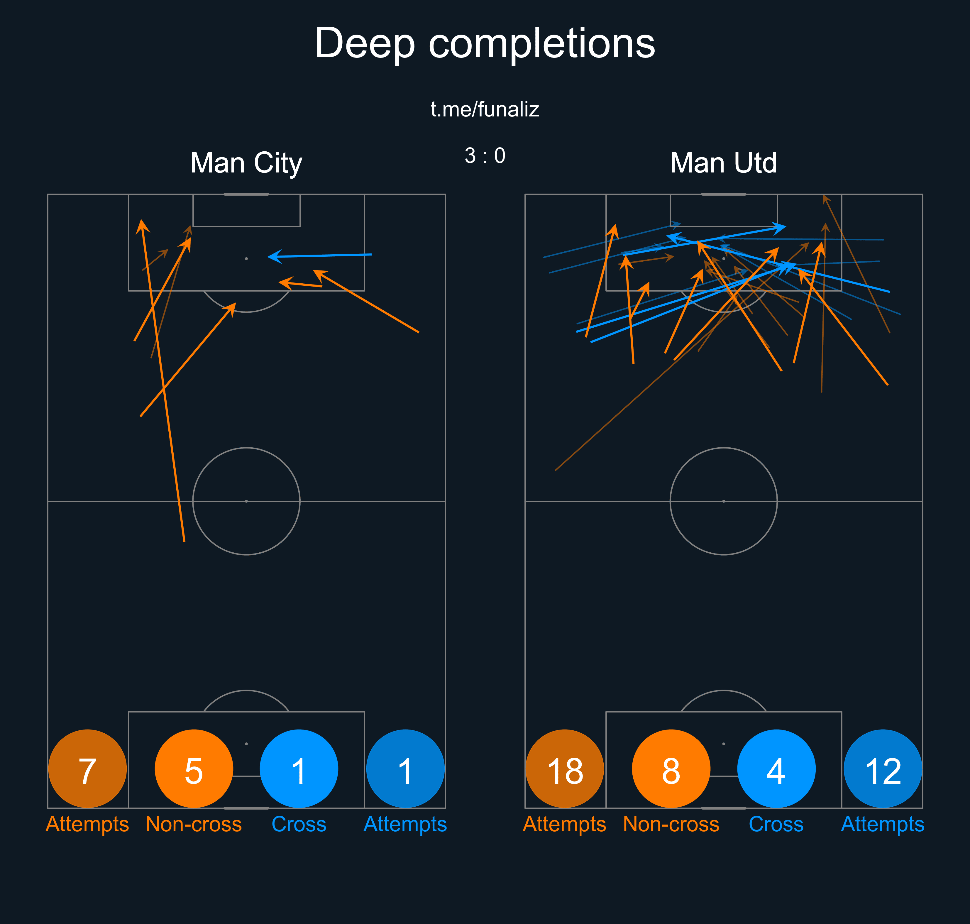 И если бы не счет 3:0 к середине второго тайма, "Ман Сити" вряд ли бы позволил "Юнайтед" добраться до двукратного перевеса по проникновениям в опасный радиус через пасы и кроссы (12:6 в пользу "МЮ").