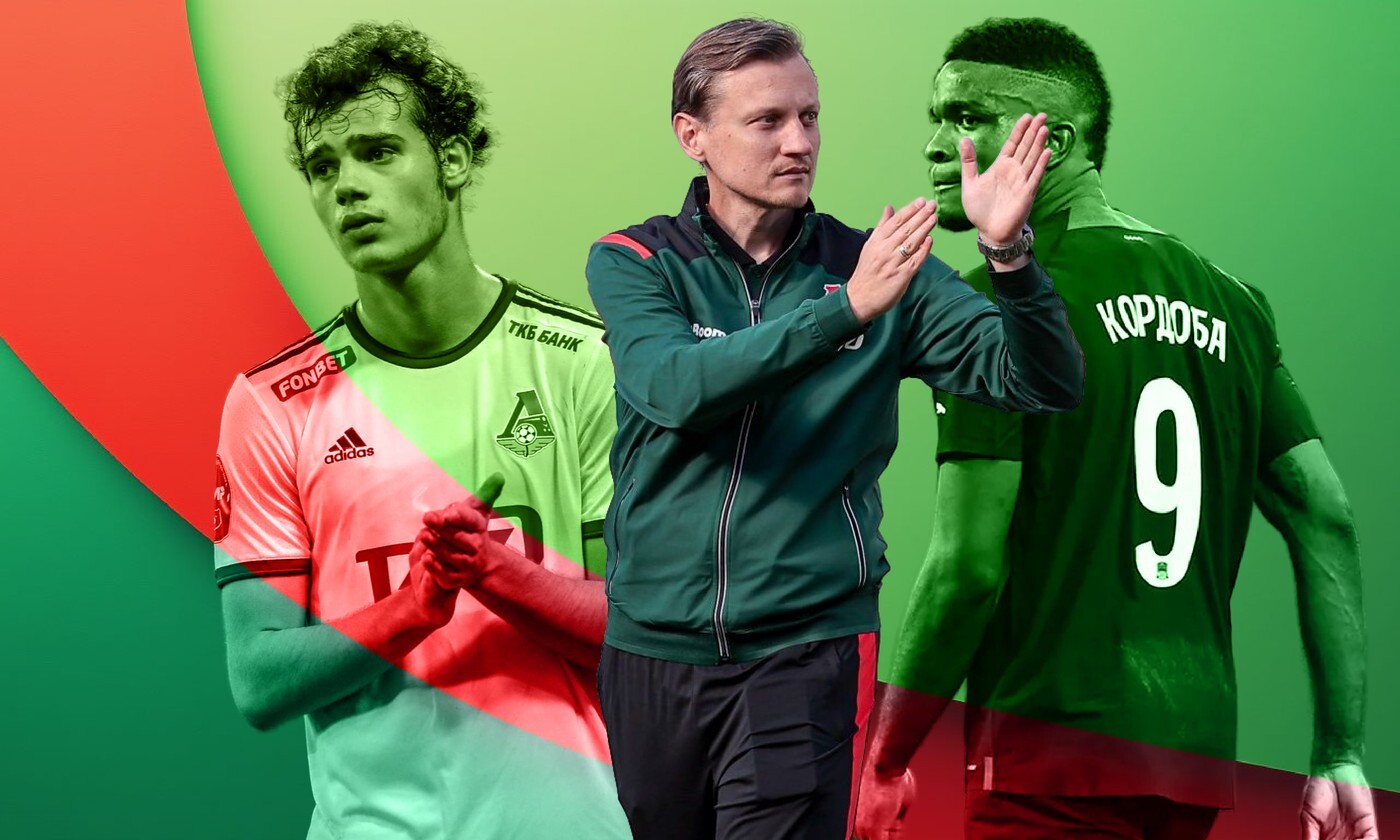 "Локомотив" выстраивался без мяча по схеме 4-4-2 в среднем блоке, лишая соперника возможности выйти из обороны через центр — из-за этого Сперцяну и Кривцову приходилось смещаться очень глубоко за первым пасом. Эдуард традиционно обменивался позициями с Са и даже с Кордобой в первом тайме, но эти треугольники не особо помогали создавать серьезные проблемы защите гостей.