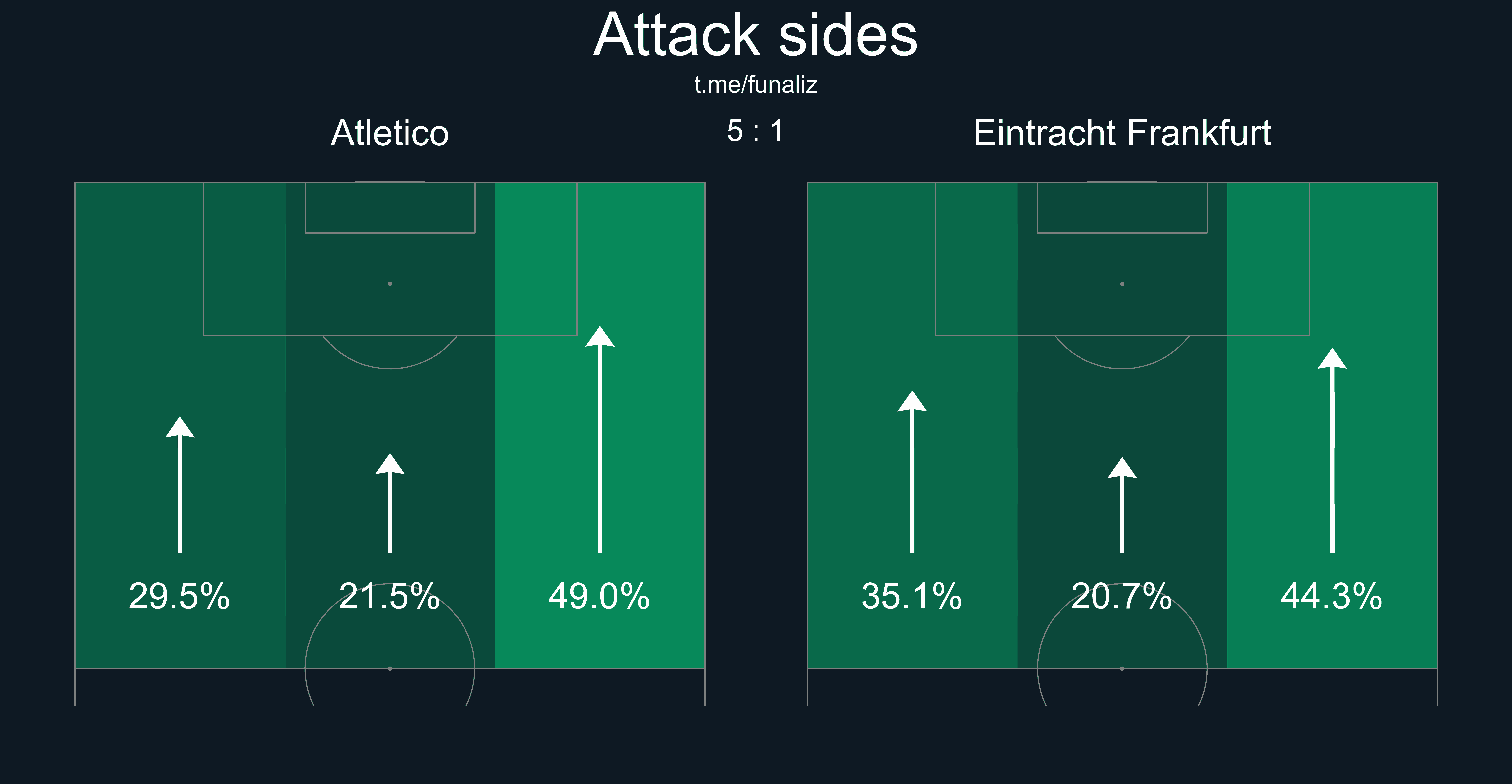 "Атлетико" был достаточно вариативен с мячом, хотя почти 50% атакующих действий и пришлись на правый край.