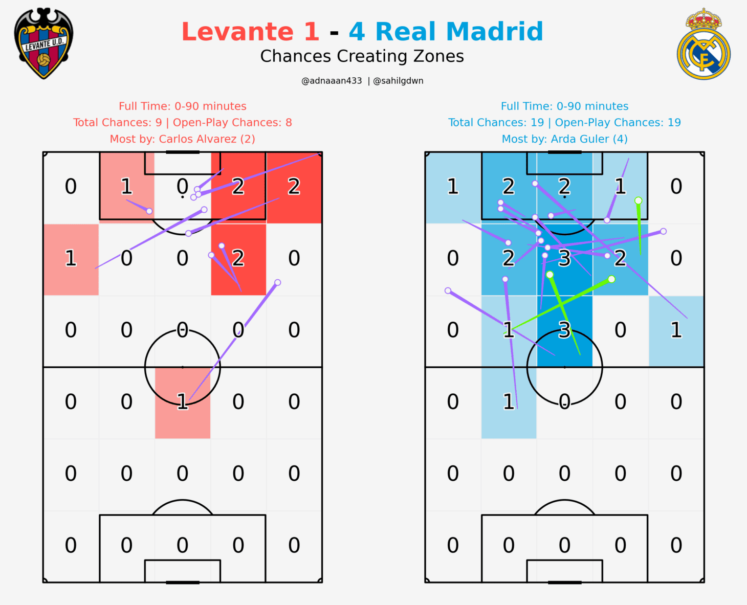 "Реал" словно включился на двух отрезках, на мастерстве переиграв непростого соперника, который старался покусывать его через полуфланги. "Леванте" после этого матча вошел в топ-4 по xG без учета пенальти в Примере. Команда из Валенсии явно заслуживает находиться в середине таблицы, но пока недобирает очков. Хотя к конкретной встрече с "Реалом" это относится в явно меньшей степени.