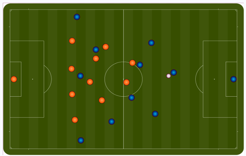 Как итог: "Вильярреал" на плохом уровне оборонялся в ширине, "бонусом" к этому в своей изначальной конфигурации существенно ограничил угрозу с флангов на мяче. К тому же в центре номинально и по факту — как было во времена Баэны — не хватало человека, который бы это компенсировал. Бьюкенен был заменен уже в перерыве, а Гейе, который номинально и на самом деле встречался с мячом в среднем выше, чем Парти и Комесанья, внес во владения сопоставимый с каждым из этой пары вклад (в районе 9% от общекомандного нон-шота за время нахождения на поле).