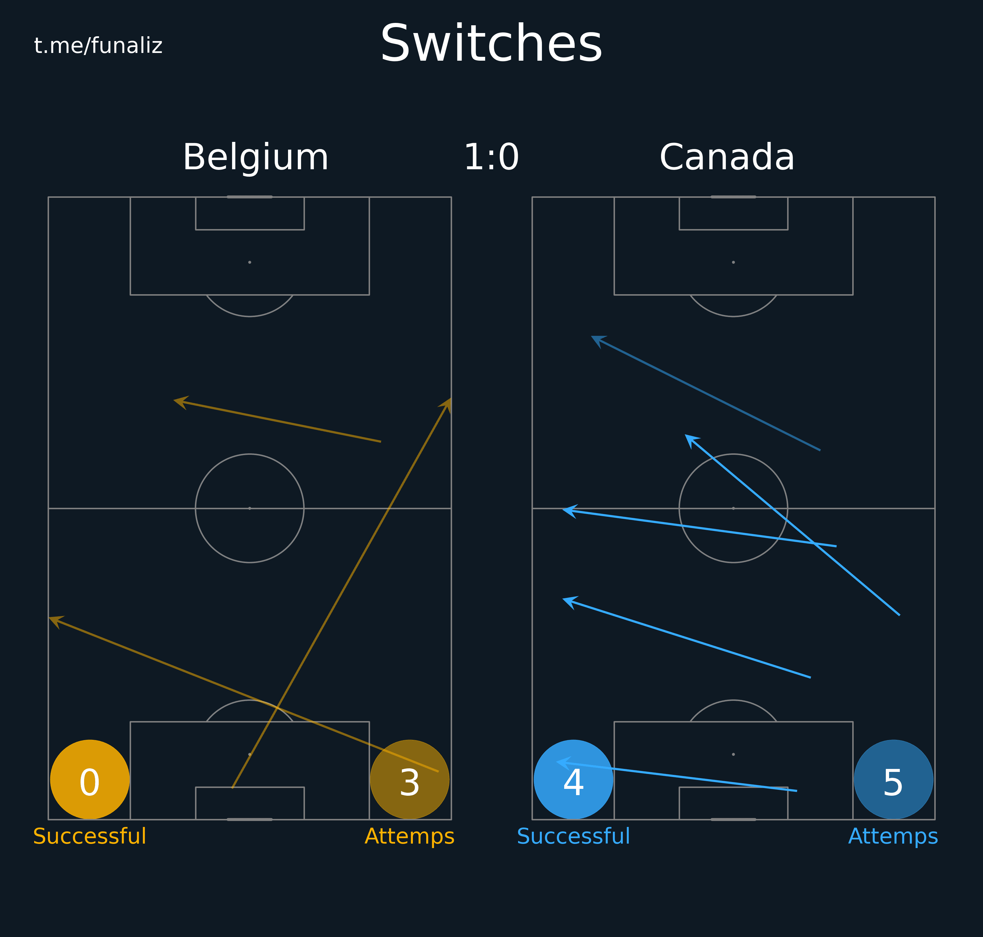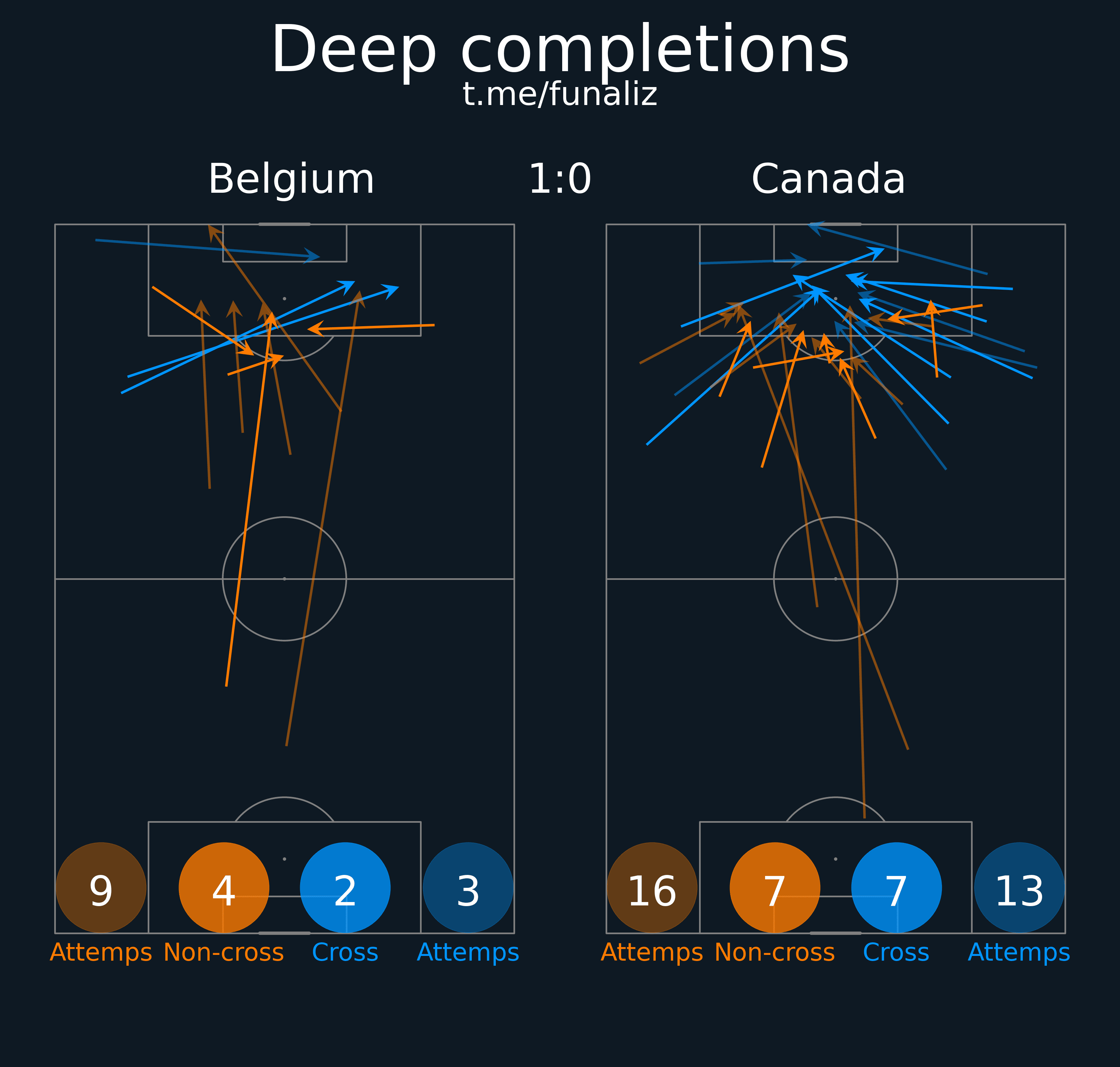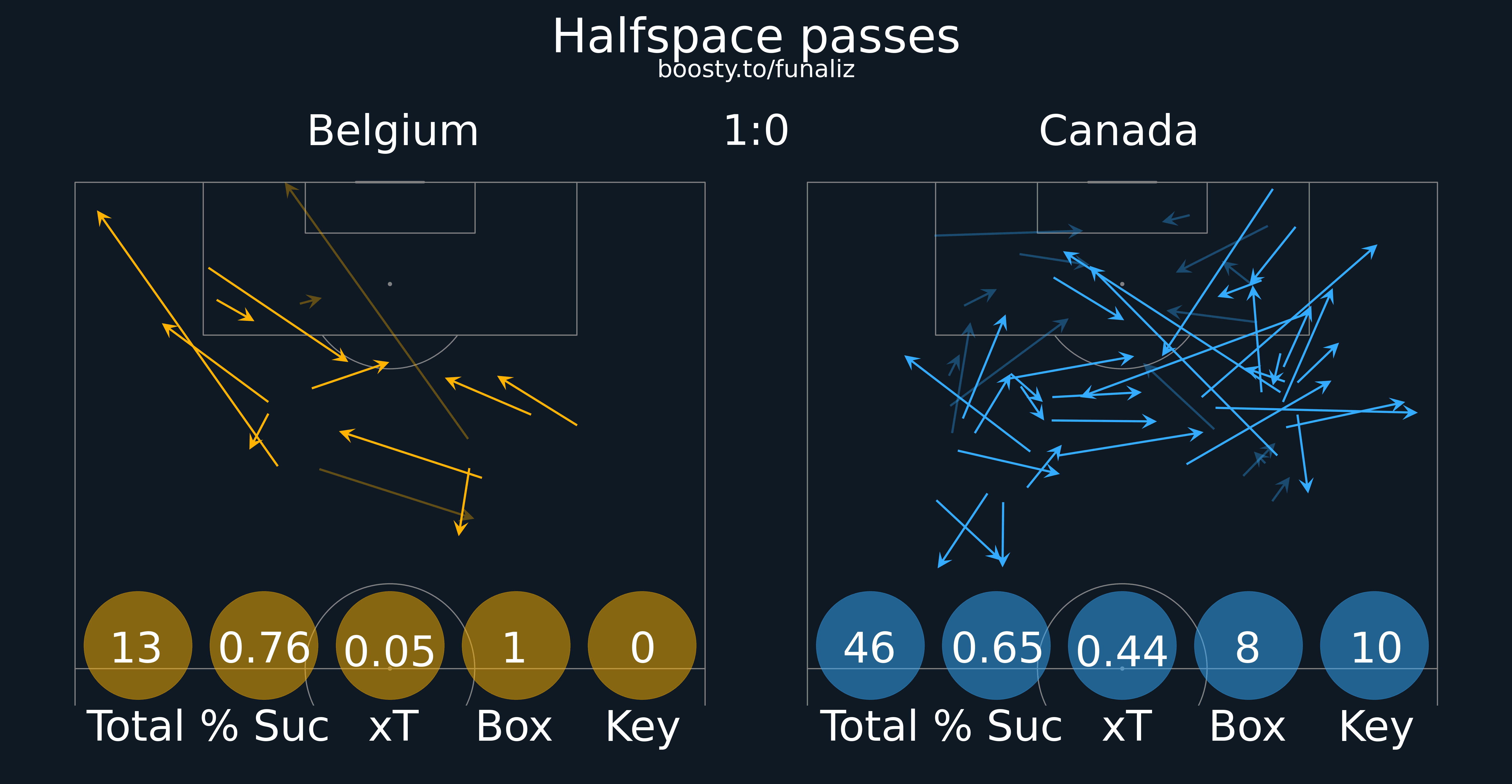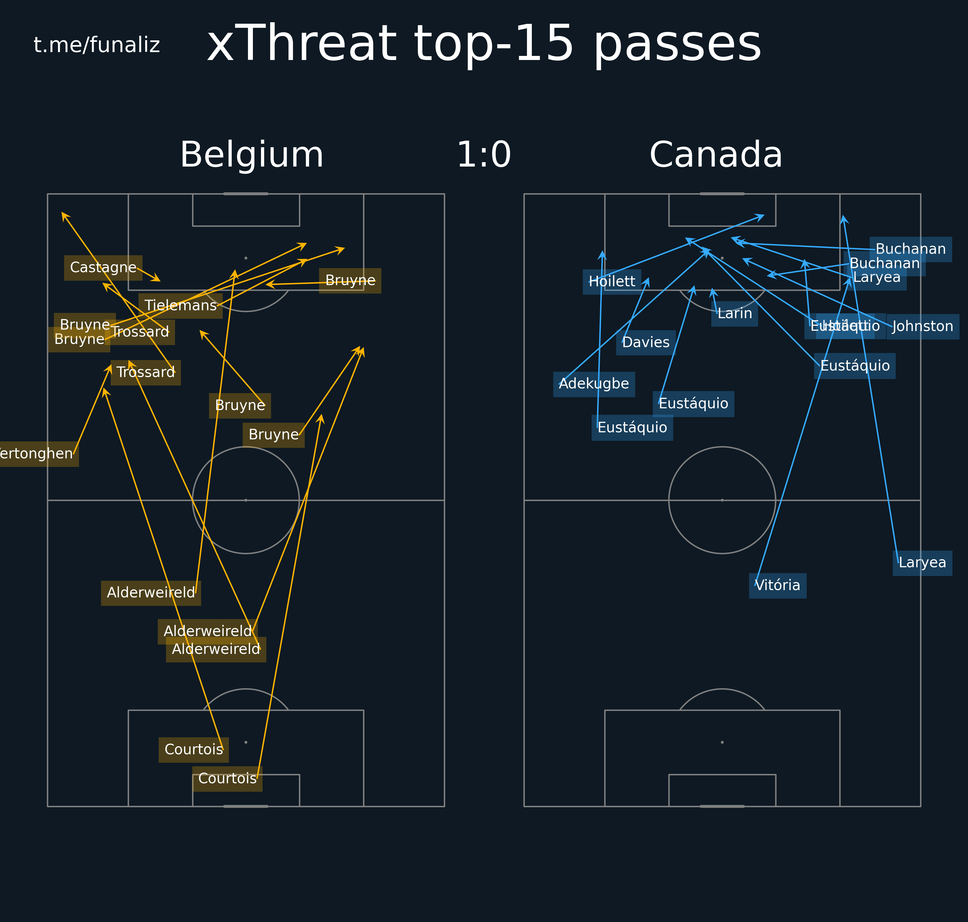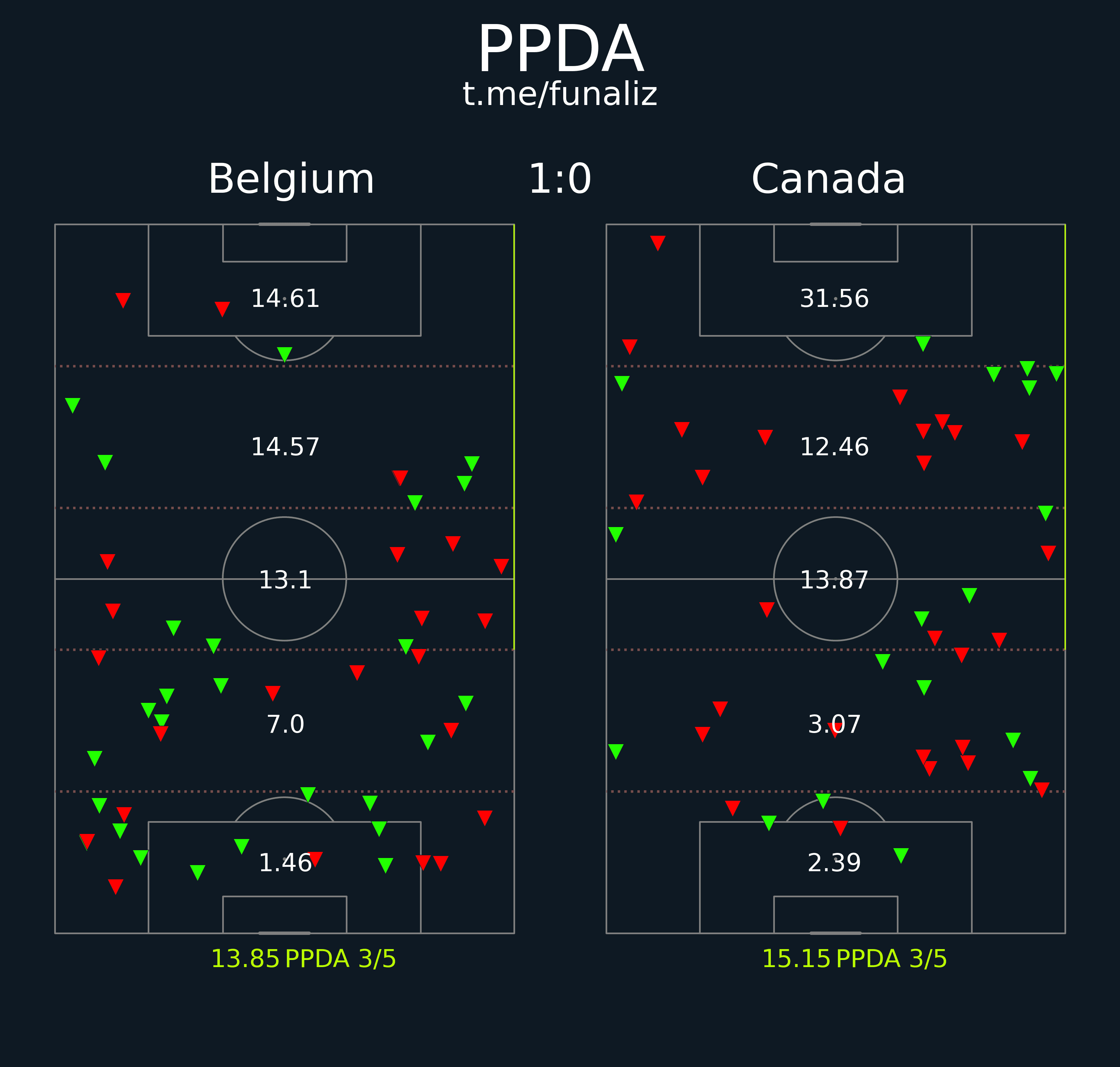 Карта передач Статистика "Ценность" ударов и ожидаемые голы Зоны действий Направления атак Тепловая карта подборов мяча Наиболее популярные попытки проникнуть в среднюю и финальную треть Ведения, закончившиеся в радиусе 20 метров от ворот соперника Точные пасы в радиус 20 метров от ворот соперника Тепловая карта оборонительных действий Отношение дистанции, на которую ведение продвигает мяч к воротам, к изначальному расстоянию мяча от ворот Территориальное доминирование Передачи из полуфлангов и их "опасность" Число передач на оборонительное действие соперника Переключения Самые "опасные" передачи Ожидаемая угроза Передачи в зону 14 и из нее