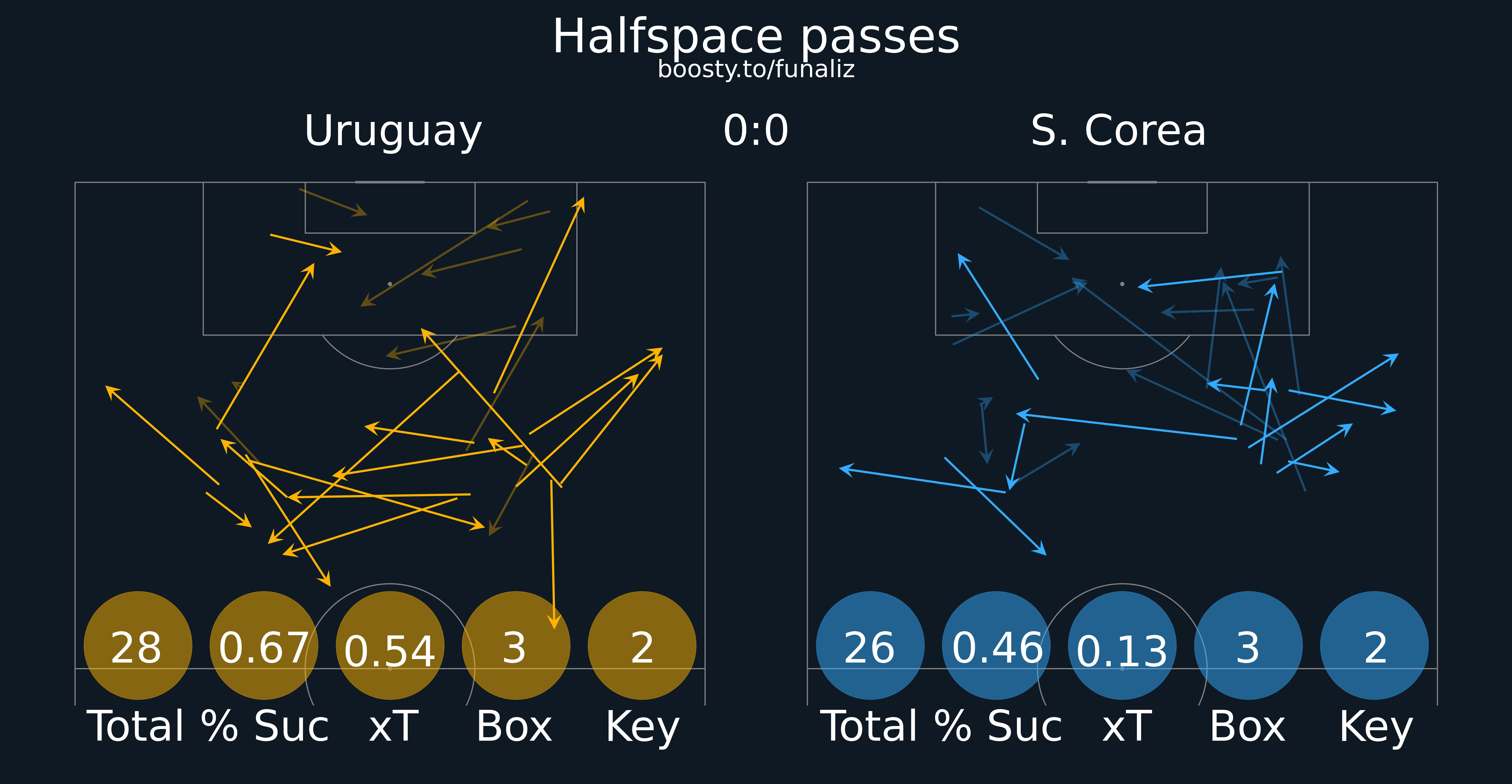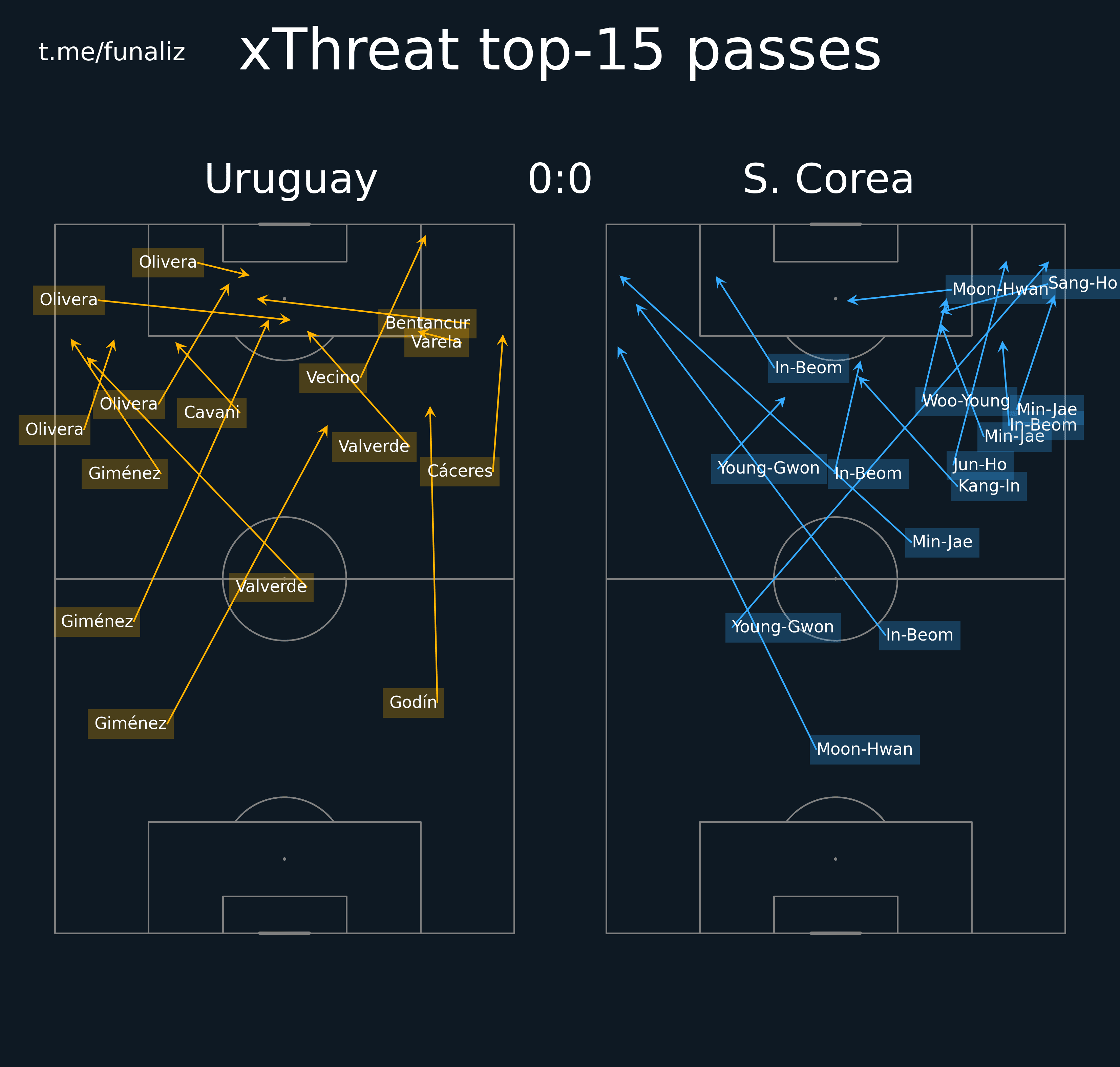 Карта передач Статистика "Ценность" ударов и ожидаемые голы Зоны действий Направления атак Тепловая карта подборов мяча Наиболее популярные попытки проникнуть в среднюю и финальную треть Ведения, закончившиеся в радиусе 20 метров от ворот соперника Точные пасы в радиус 20 метров от ворот соперника Тепловая карта оборонительных действий Отношение дистанции, на которую ведение продвигает мяч к воротам, к изначальному расстоянию мяча от ворот Территориальное доминирование Передачи из полуфлангов и их "опасность" Число передач на оборонительное действие соперника Переключения Самые "опасные" передачи Ожидаемая угроза Передачи в зону 14 и из нее