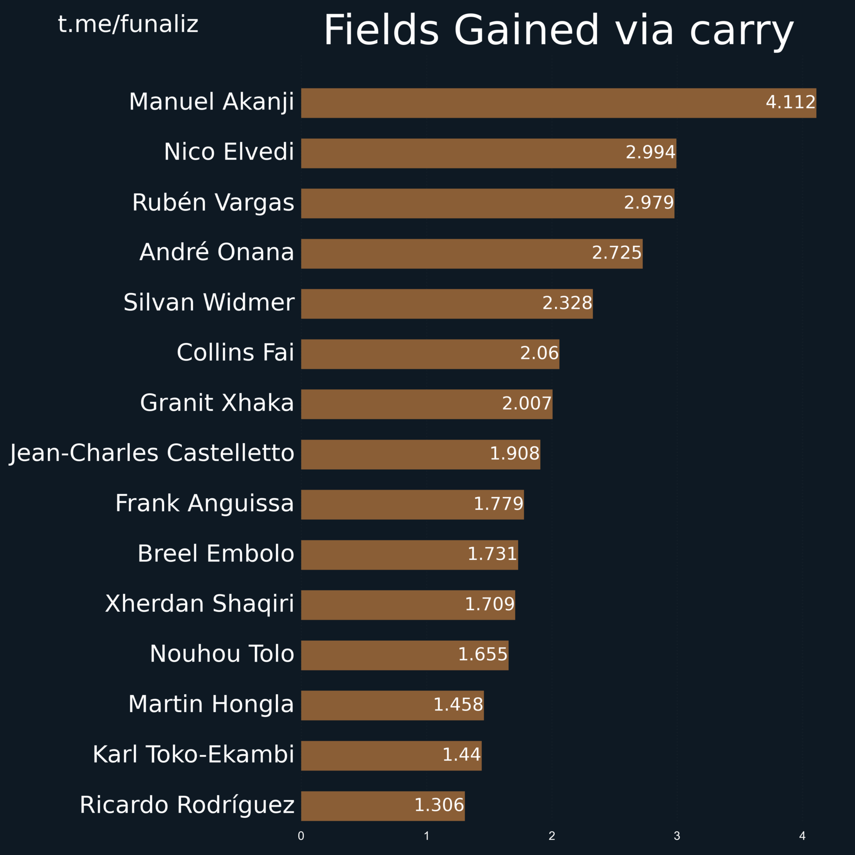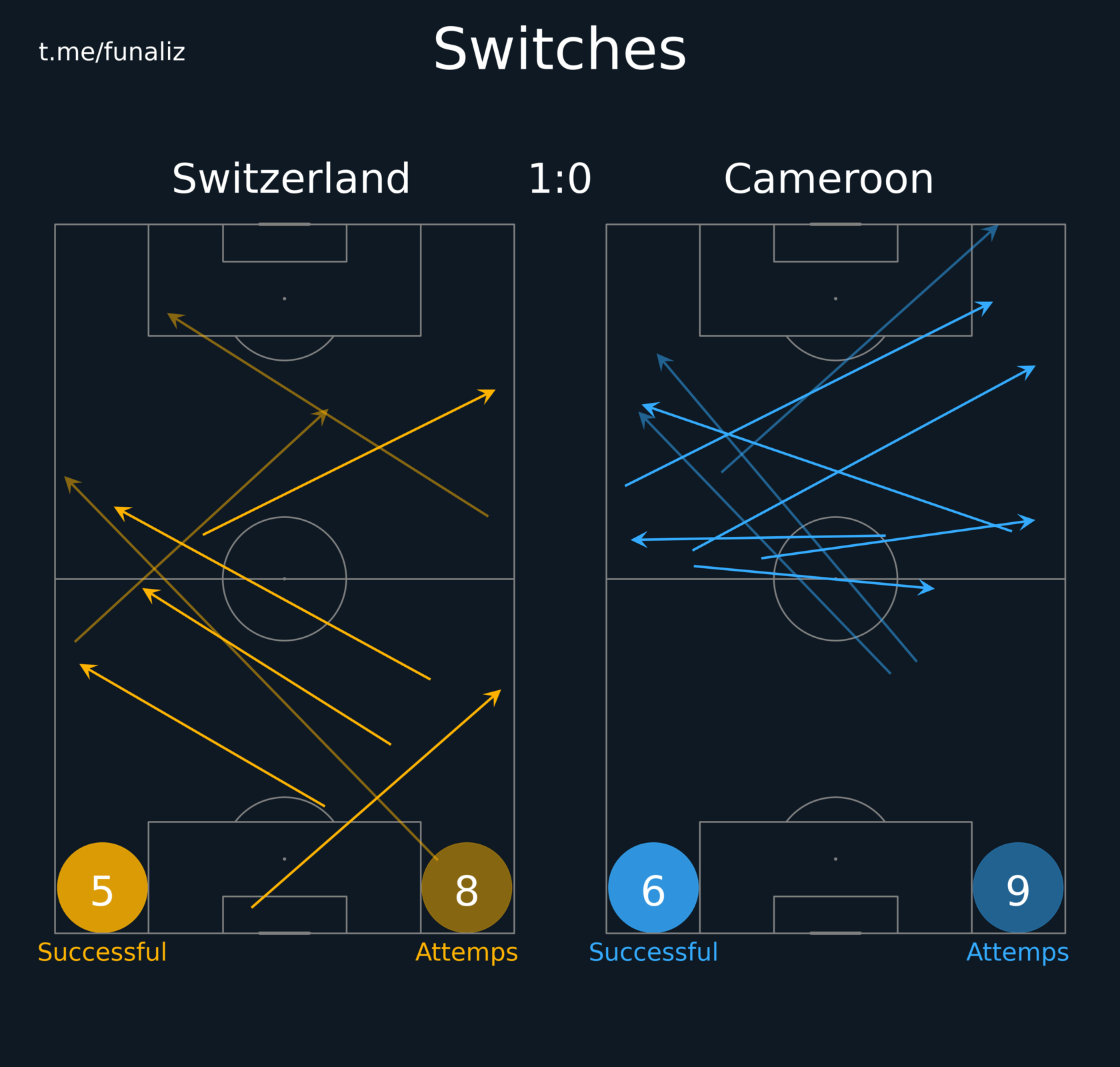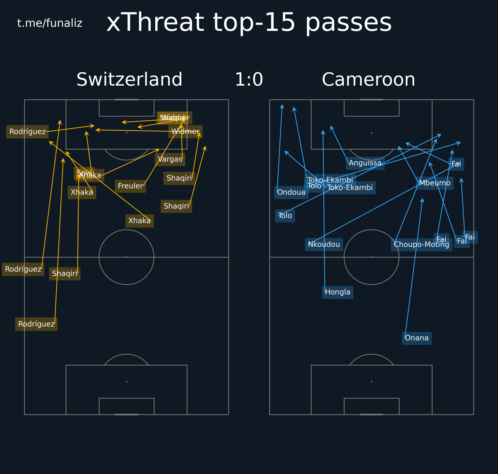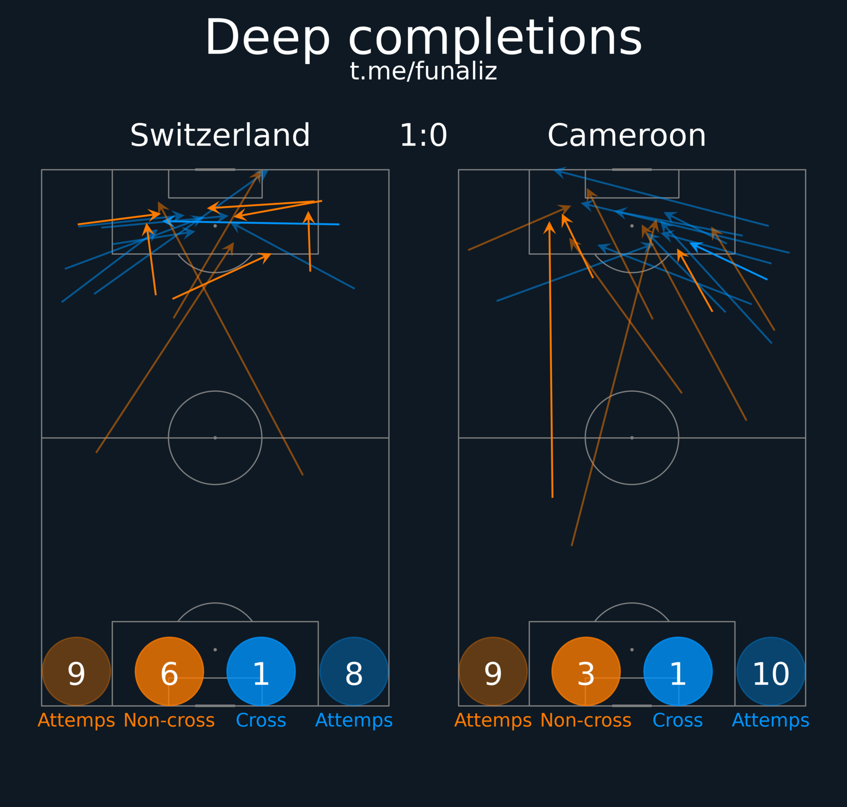 Карта передач Статистика "Ценность" ударов и ожидаемые голы Зоны действий Направления атак Тепловая карта подборов мяча Наиболее популярные попытки проникнуть в среднюю и финальную треть Ведения, закончившиеся в радиусе 20 метров от ворот соперника Точные пасы в радиус 20 метров от ворот соперника Тепловая карта оборонительных действий Отношение дистанции, на которую ведение продвигает мяч к воротам, к изначальному расстоянию мяча от ворот Территориальное доминирование Передачи из полуфлангов и их "опасность" Число передач на оборонительное действие соперника Переключения Самые "опасные" передачи Ожидаемая угроза Передачи в зону 14 и из нее