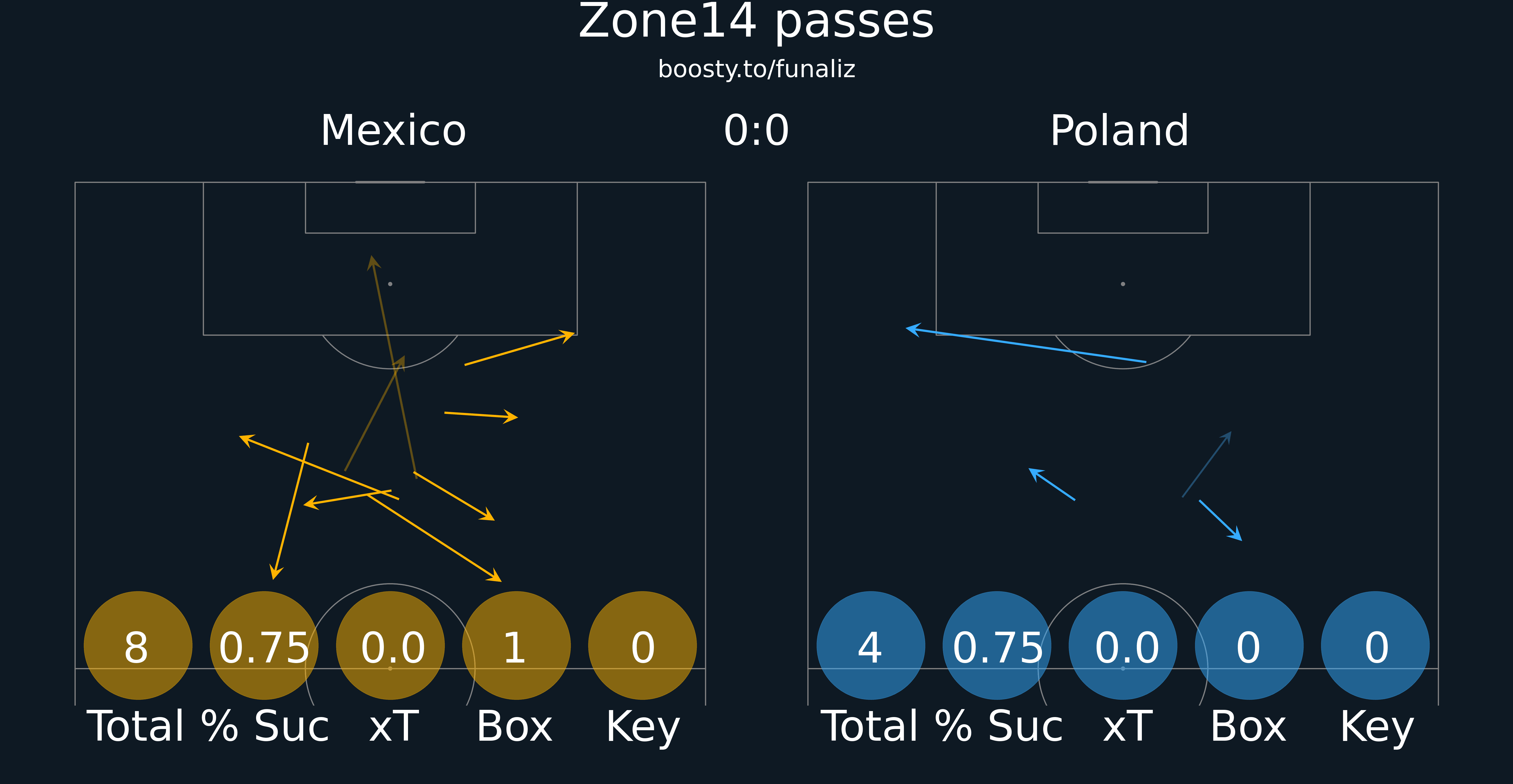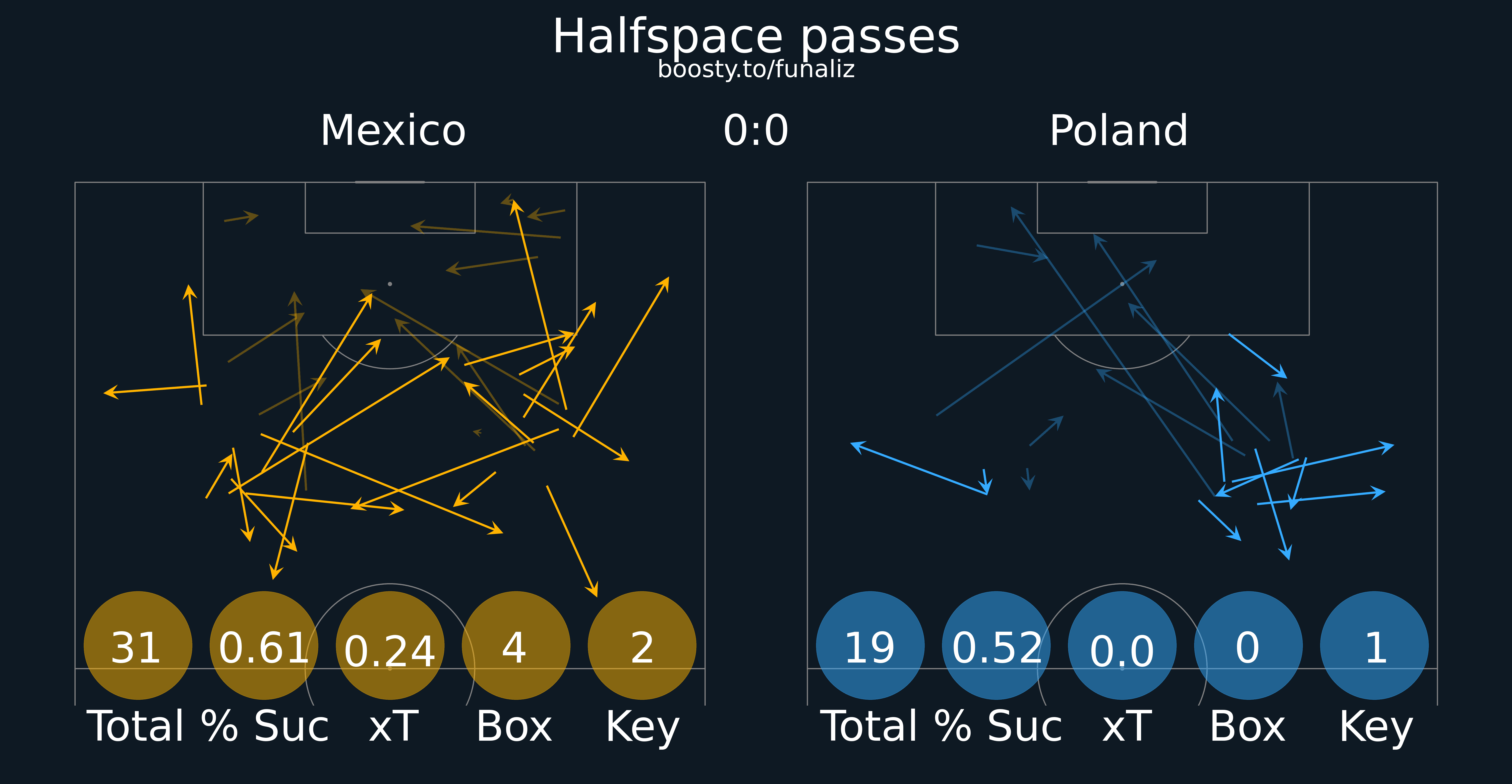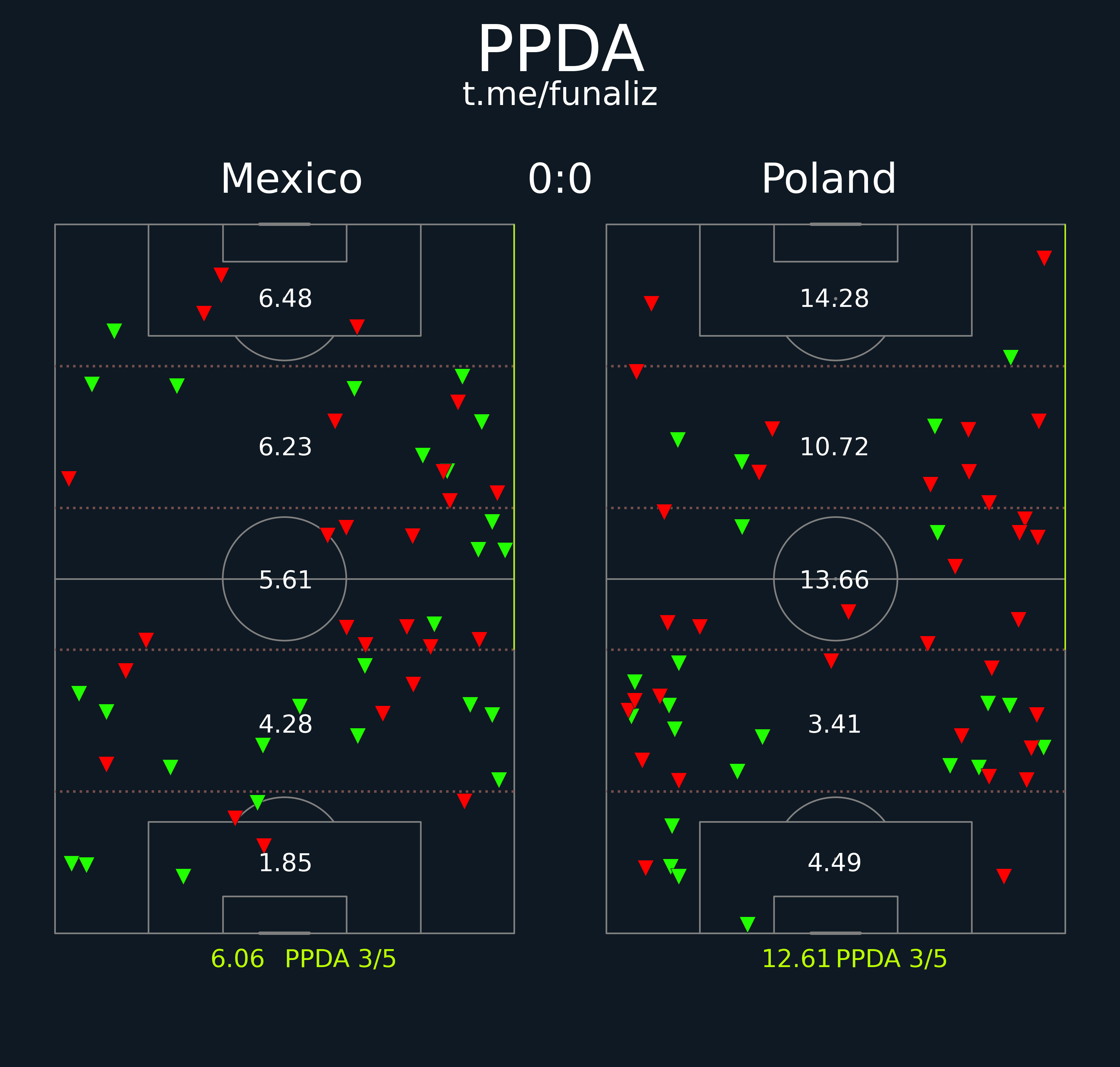 Карта передач Статистика "Ценность" ударов и ожидаемые голы Зоны действий Направления атак Тепловая карта подборов мяча Наиболее популярные попытки проникнуть в среднюю и финальную треть Ведения, закончившиеся в радиусе 20 метров от ворот соперника Точные пасы в радиус 20 метров от ворот соперника Тепловая карта оборонительных действий Отношение дистанции, на которую ведение продвигает мяч к воротам, к изначальному расстоянию мяча от ворот Территориальное доминирование Передачи из полуфлангов и их "опасность" Число передач на оборонительное действие соперника Переключения Самые "опасные" передачи Ожидаемая угроза Передачи в зону 14 и из нее