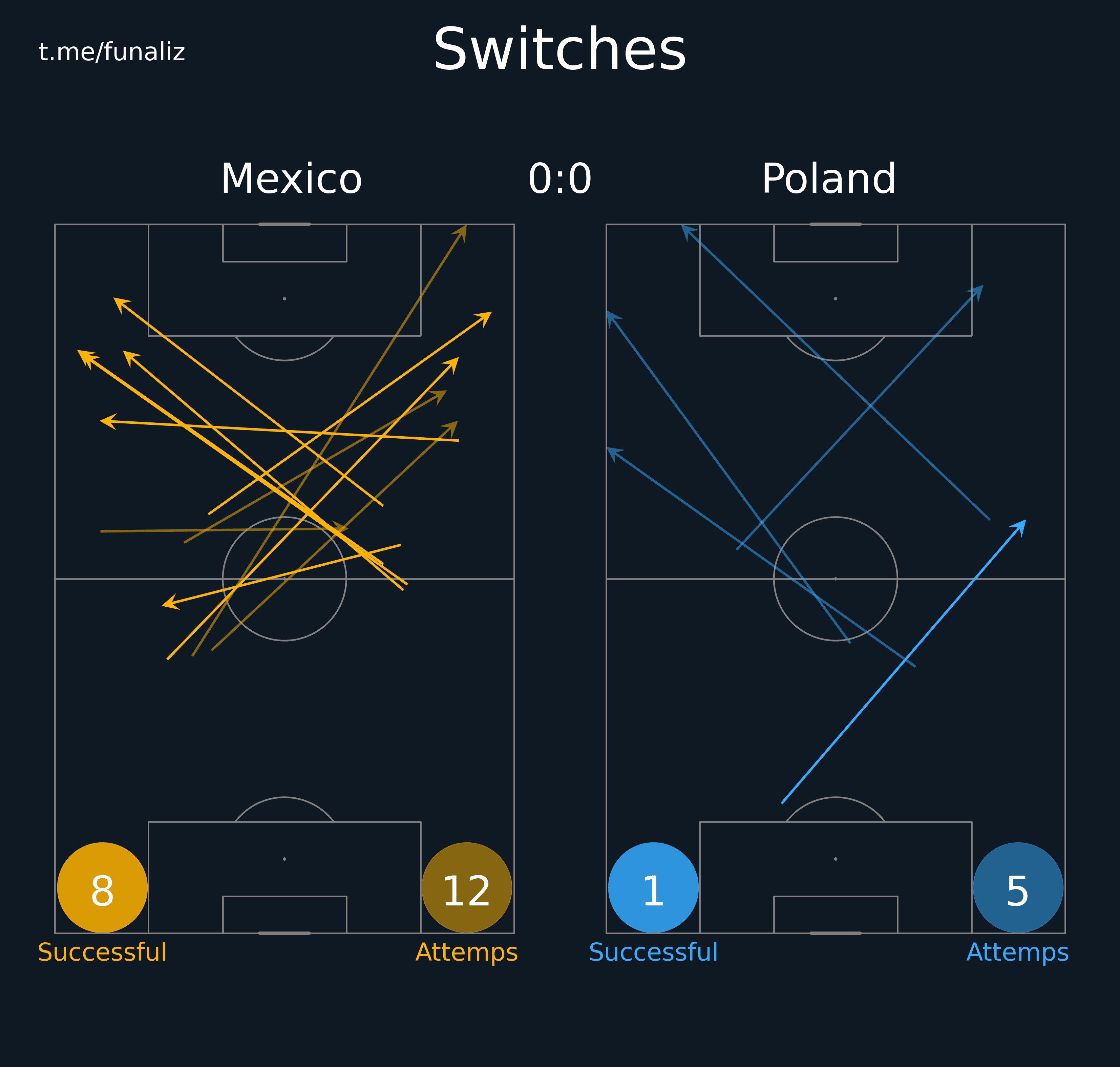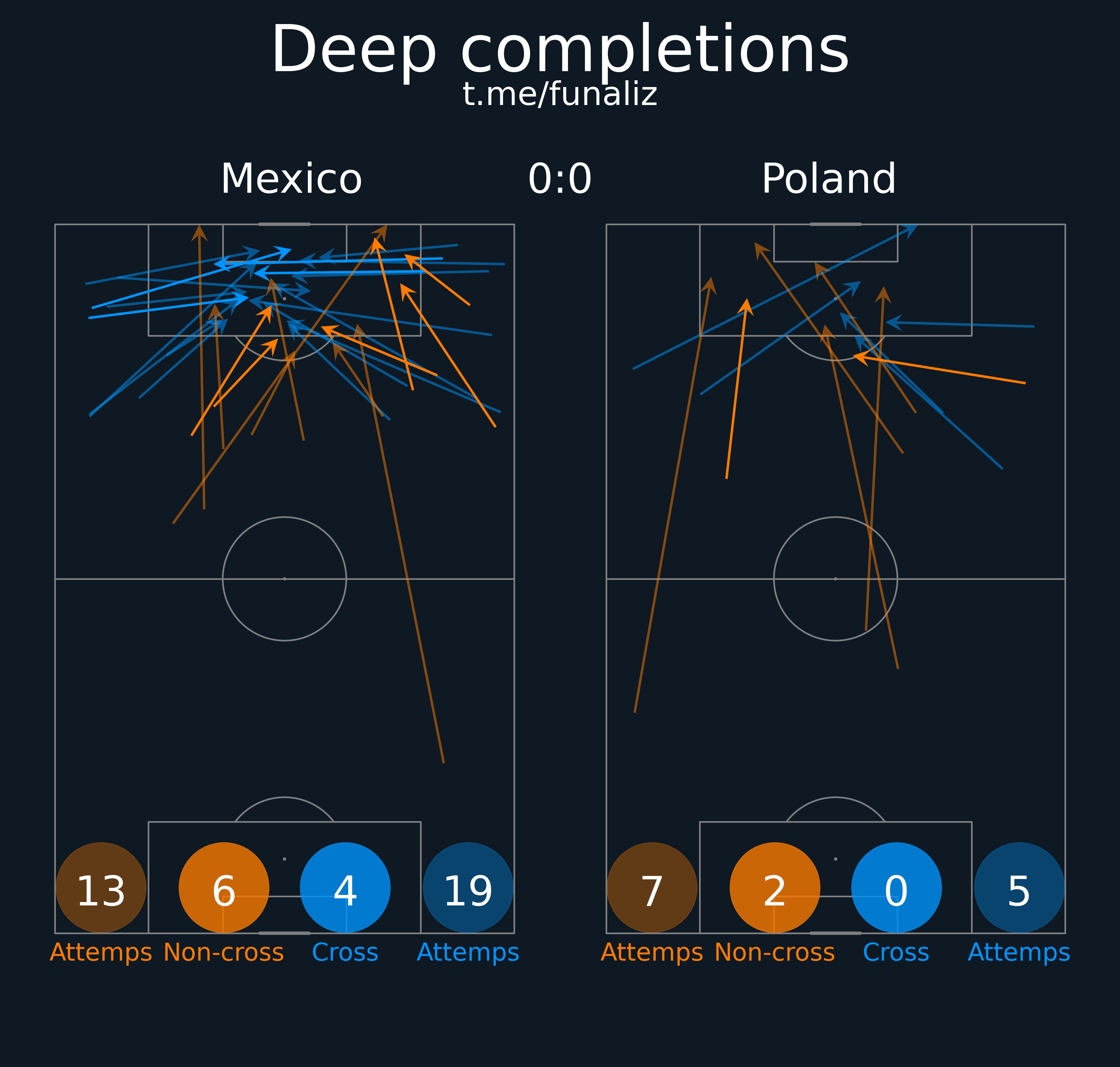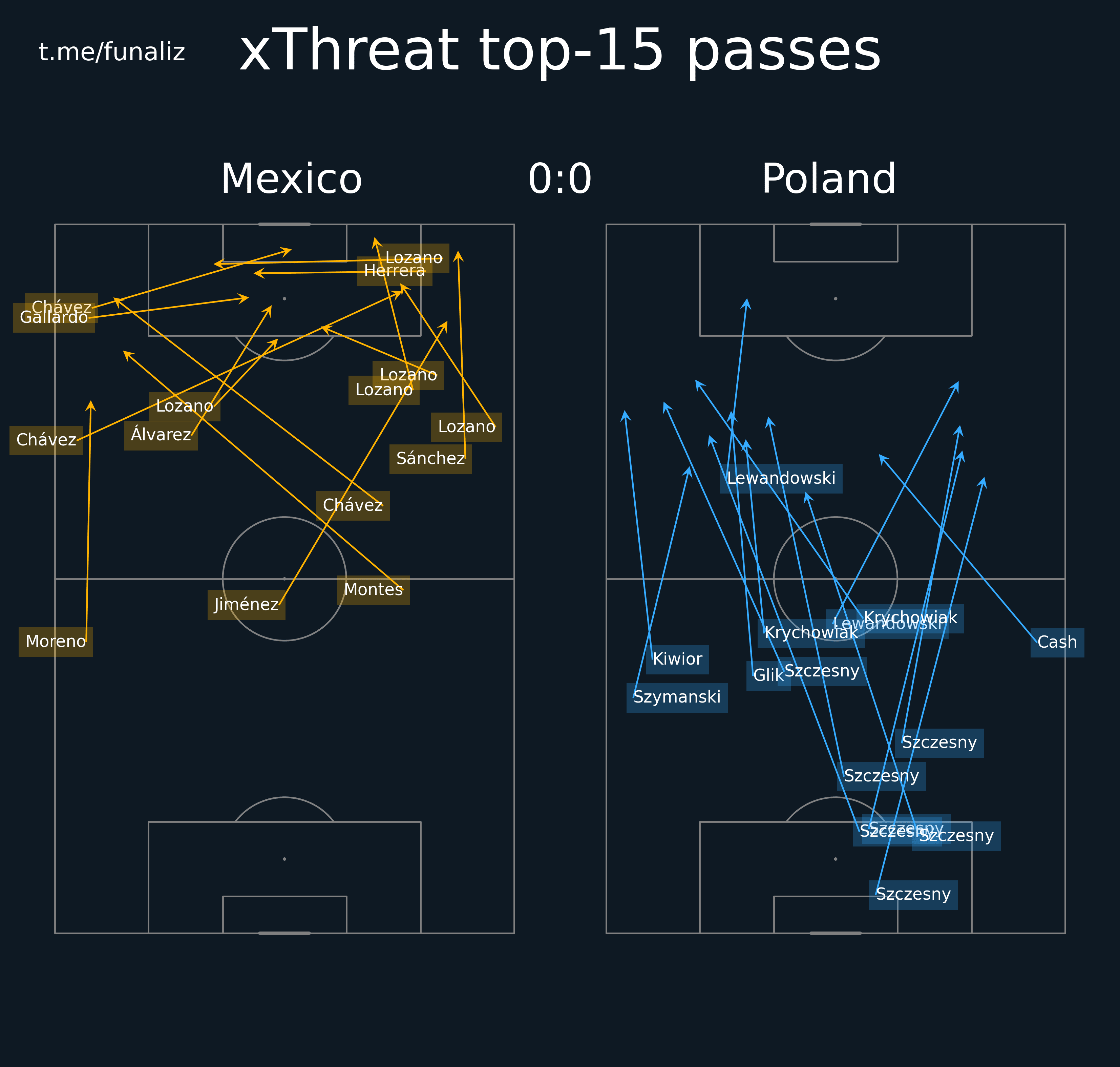 Карта передач Статистика "Ценность" ударов и ожидаемые голы Зоны действий Направления атак Тепловая карта подборов мяча Наиболее популярные попытки проникнуть в среднюю и финальную треть Ведения, закончившиеся в радиусе 20 метров от ворот соперника Точные пасы в радиус 20 метров от ворот соперника Тепловая карта оборонительных действий Отношение дистанции, на которую ведение продвигает мяч к воротам, к изначальному расстоянию мяча от ворот Территориальное доминирование Передачи из полуфлангов и их "опасность" Число передач на оборонительное действие соперника Переключения Самые "опасные" передачи Ожидаемая угроза Передачи в зону 14 и из нее