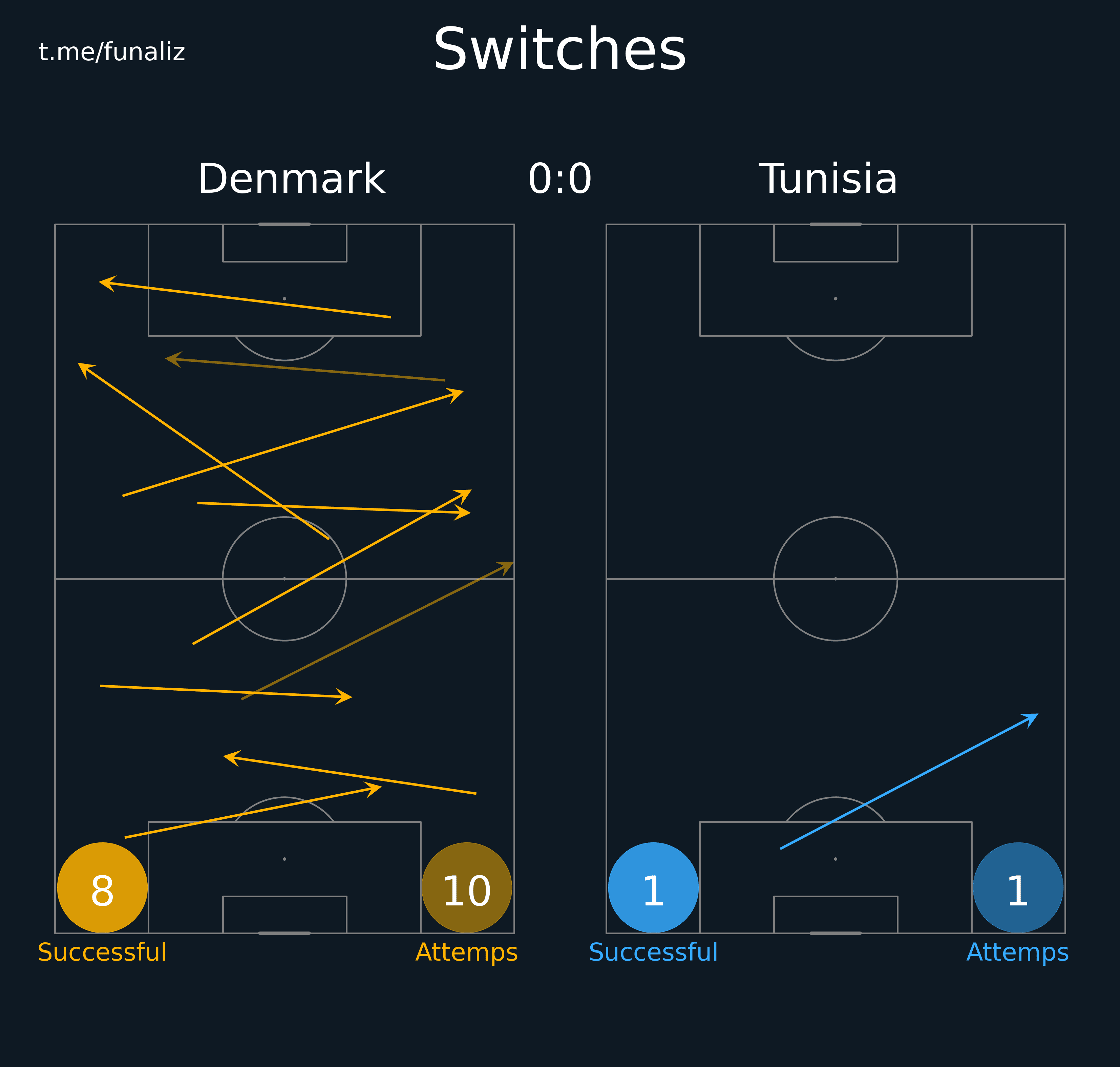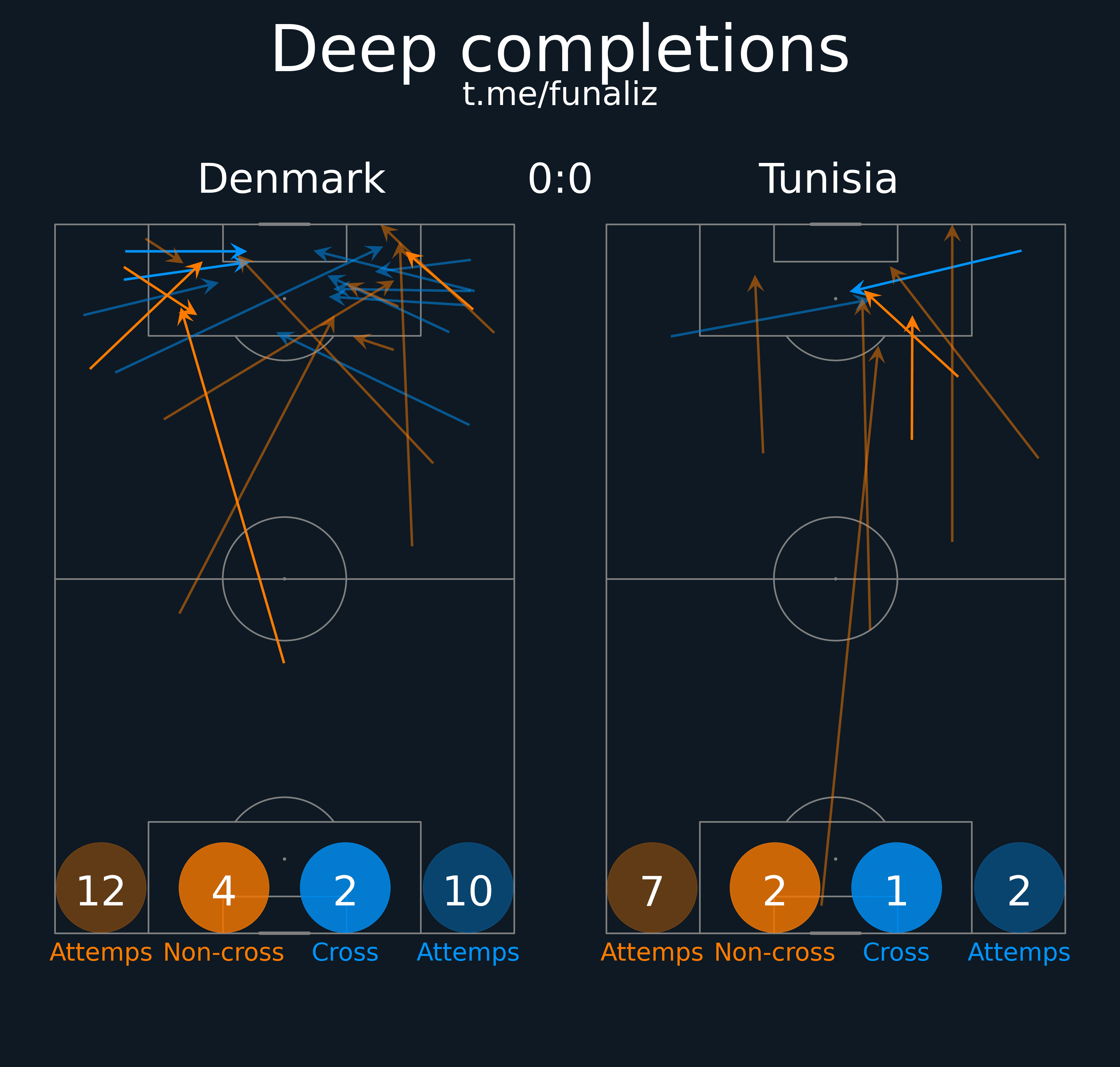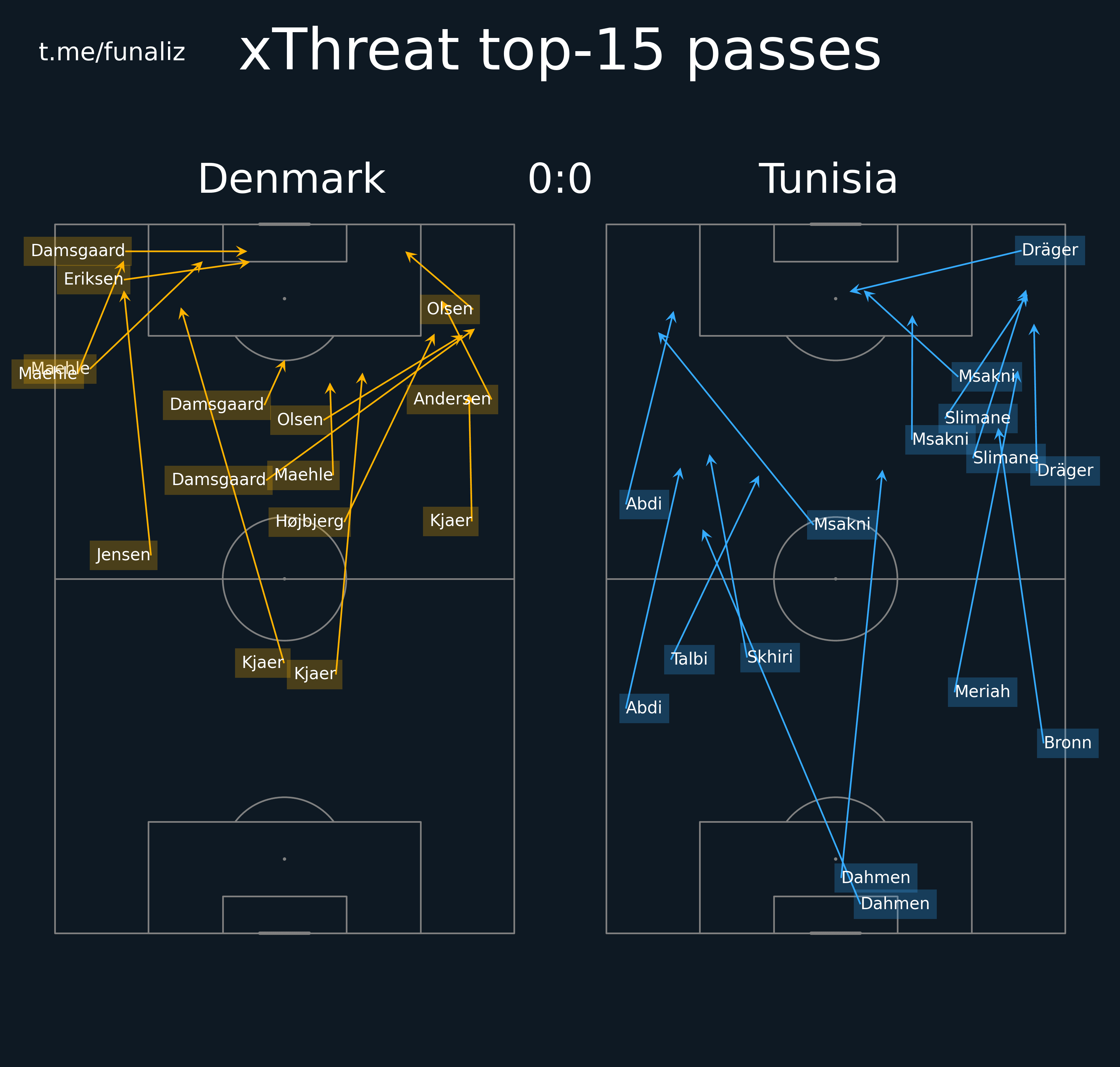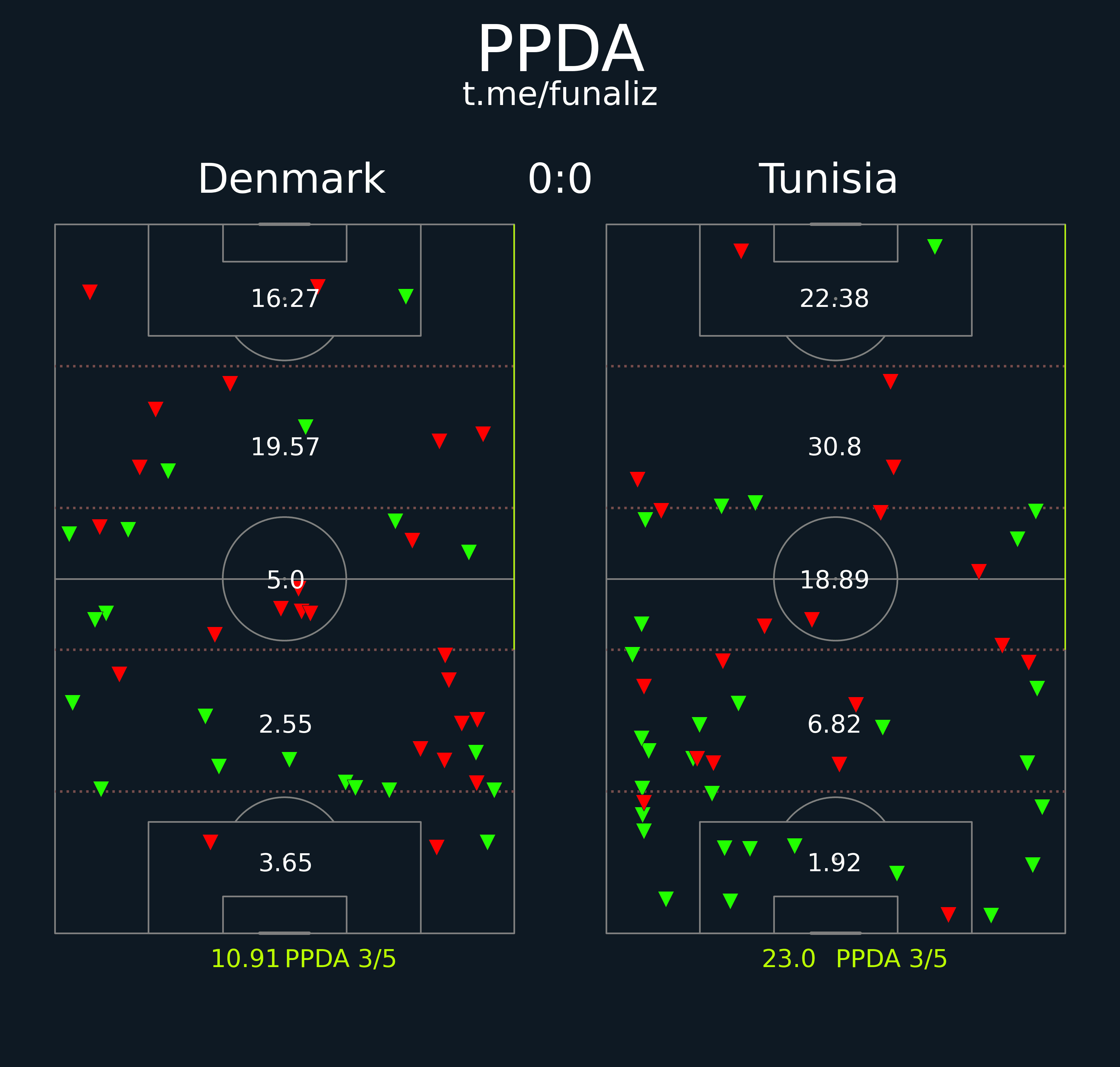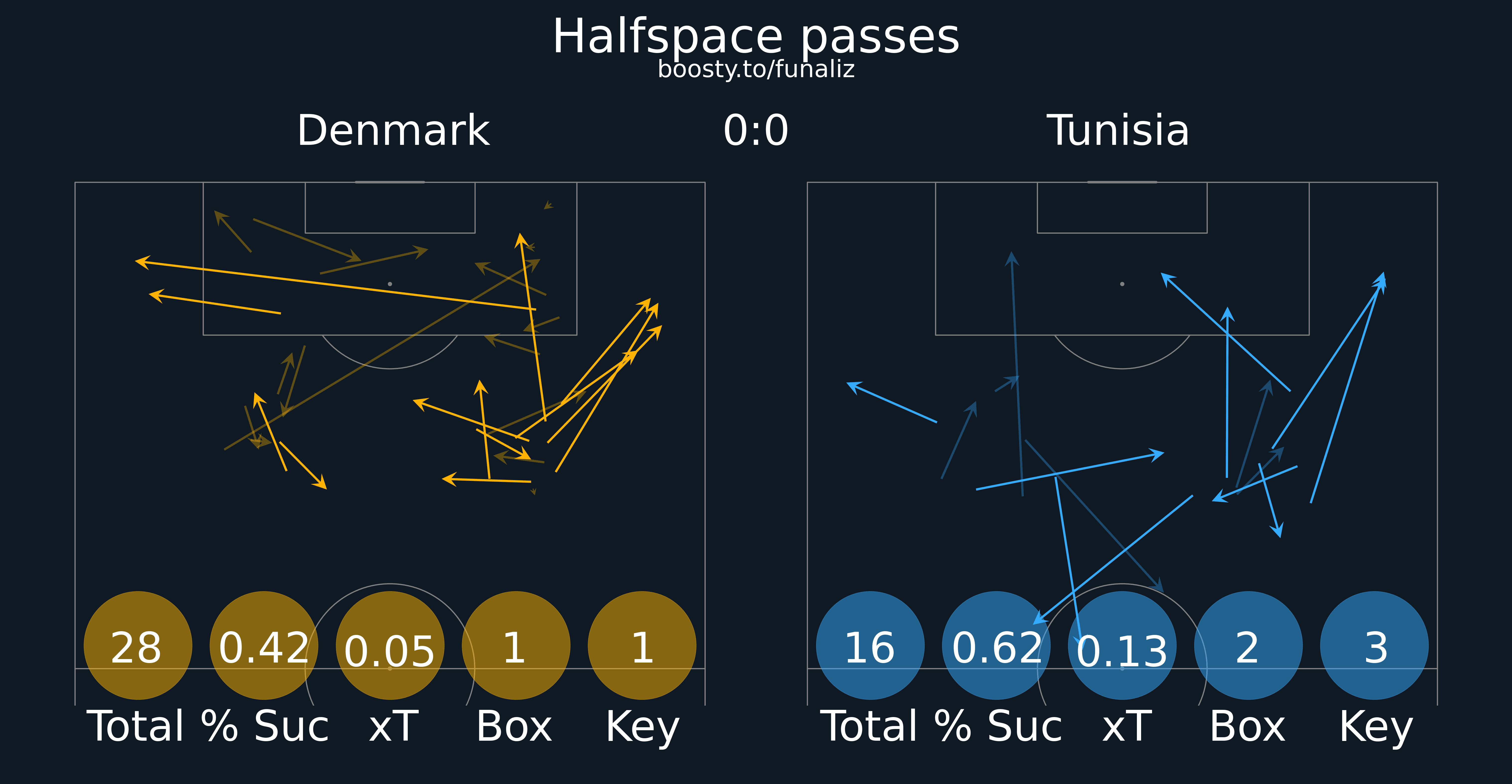 Карта передач (до первой замены в матче) Статистика "Ценность" ударов и ожидаемые голы Зоны действий Направления атак Тепловая карта подборов мяча Наиболее популярные попытки проникнуть в среднюю и финальную треть Ведения, закончившиеся в радиусе 20 метров от ворот соперника Точные пасы в радиус 20 метров от ворот соперника Тепловая карта оборонительных действий Отношение дистанции, на которую ведение продвигает мяч к воротам, к изначальному расстоянию мяча от ворот Территориальное доминирование Передачи из полуфлангов и их "опасность" Число передач на оборонительное действие соперника Переключения Самые "опасные" передачи Ожидаемая угроза Передачи в зону 14 и из нее