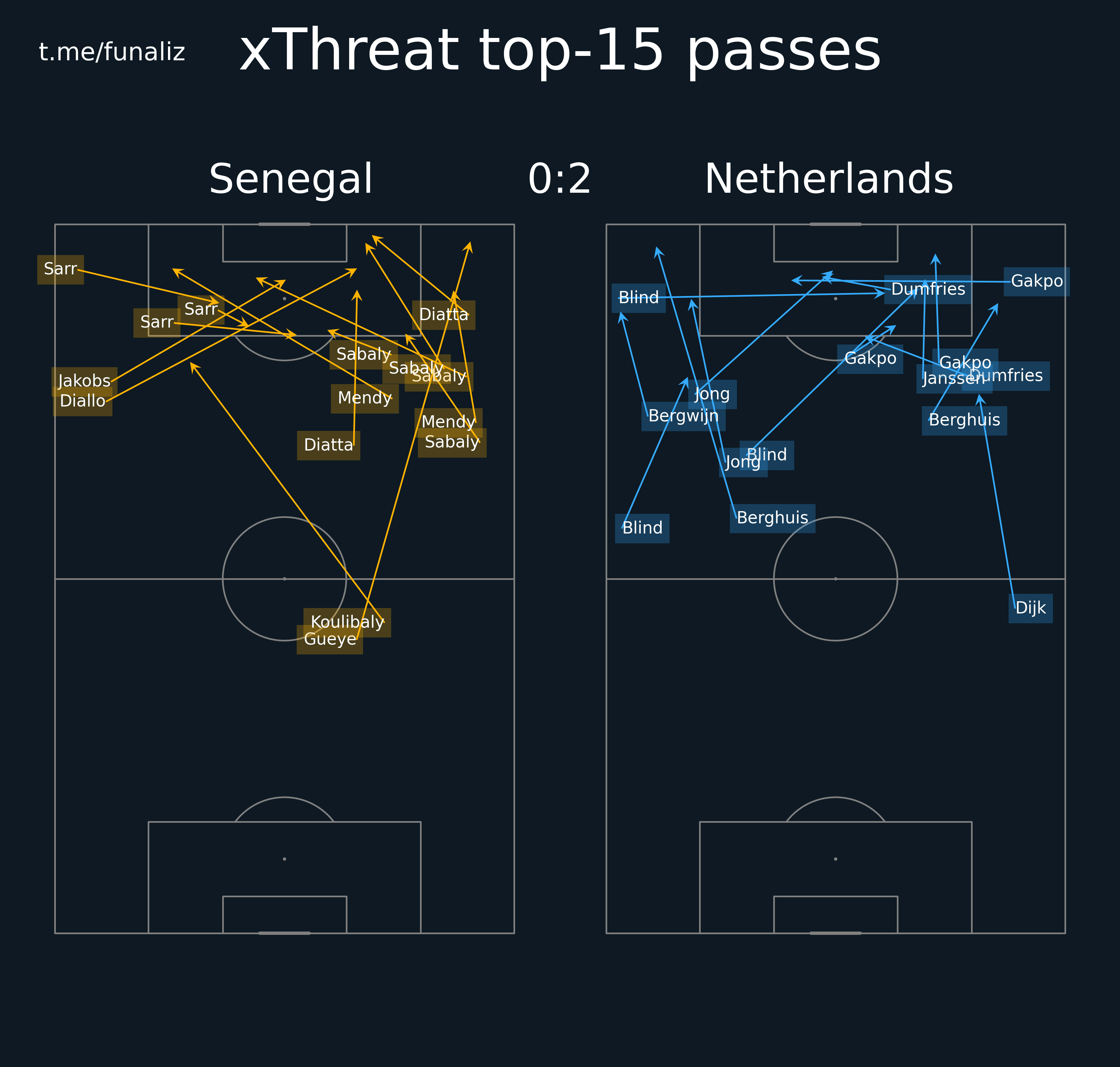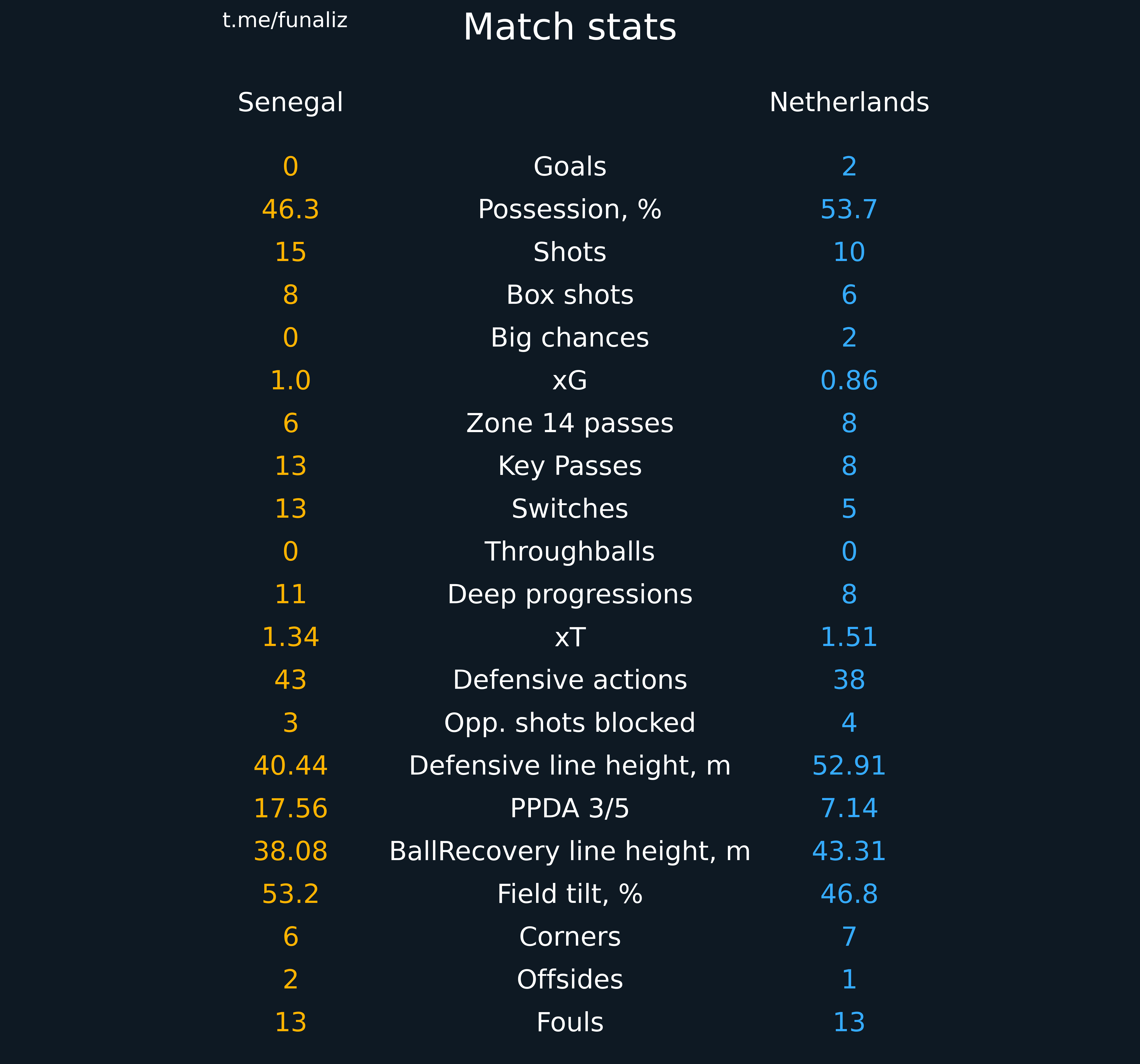 Карта передач Статистика "Ценность" ударов и ожидаемые голы Зоны действий Направления атак Тепловая карта подборов мяча Наиболее популярные попытки проникнуть в среднюю и финальную треть Ведения, закончившиеся в радиусе 20 метров от ворот соперника Точные пасы в радиус 20 метров от ворот соперника Тепловая карта оборонительных действий Отношение дистанции, на которую ведение продвигает мяч к воротам, к изначальному расстоянию мяча от ворот Территориальное доминирование Передачи из полуфлангов и их "опасность" Число передач на оборонительное действие соперника Переключения Самые "опасные" передачи Ожидаемая угроза Передачи в зону 14 и из нее
